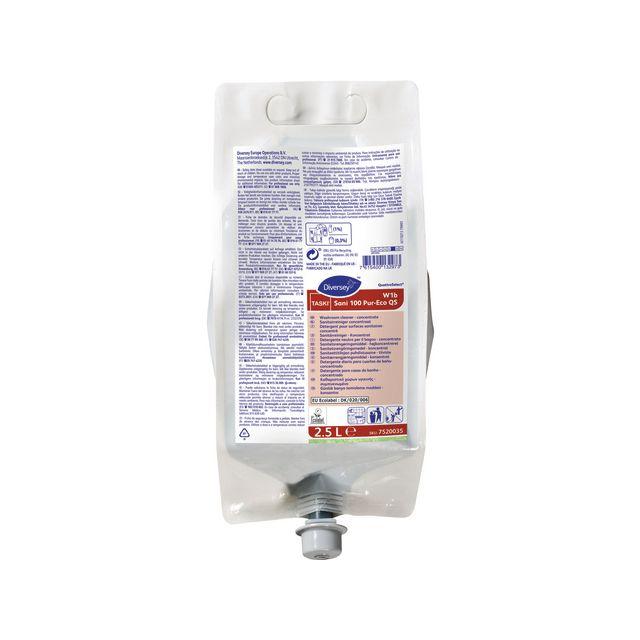 Sanitetsrengöring i koncentrat som kombinerar prestanda, säkerhet för användaren och miljömässigt ansvar. TASKI Sani 100 Pur-Eco QS används i låga doseringar som håller både förbrukning och negativ miljöpåverkan nere. Förpackningarna är återvinningsbara.