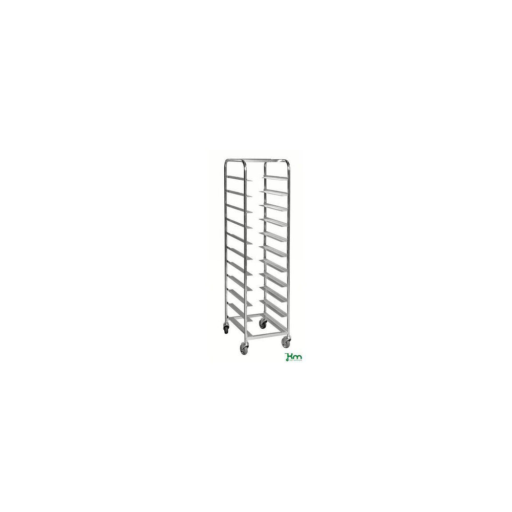Elförzinkad backvagn med plats för 11 Europabackar. Tillverkad av 25mm stålrör och har en maxhöjd på 145mm. Passar backar med måtten 600x400mm och har plats för 11st. Levereras omonterat.