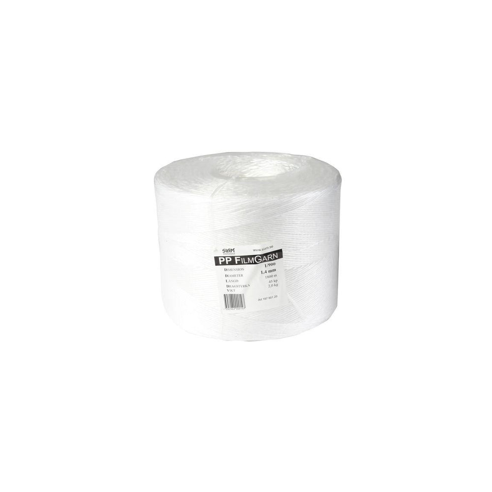 Bindgarn som lämpar sig utmärkt i förpackningsindustrin och lantbruk. Vitt entrådigt syntetfibergarn i polypropylen. - 1-trådig - Längd: 1800m - Tjocklek: 1,4mm - Vikt: 2kg - Tål: 44kg