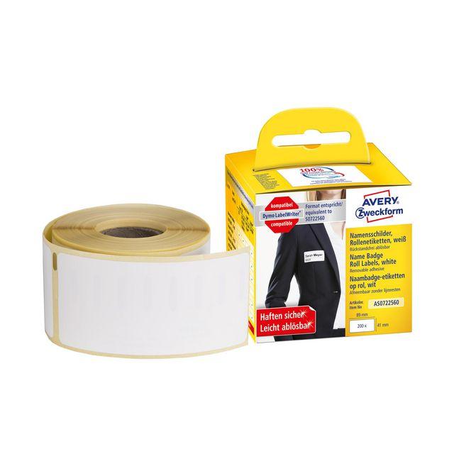 Averys självhäftande namnskyltar på rulle för etikettskrivare