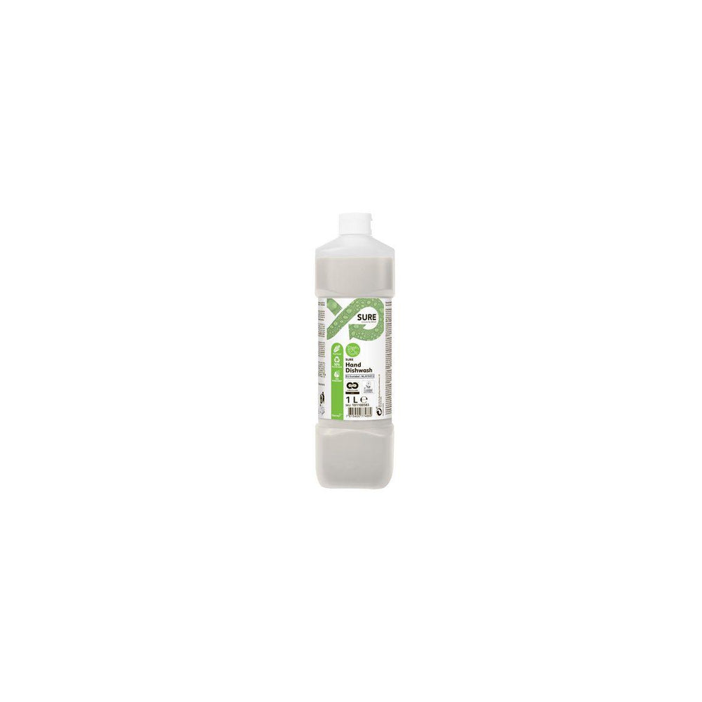 Ett säkert och miljömedvetet handdiskmedel för rengöring av grytor, kastruller, porslin, glas och alla diskbara köksredskap. SURE Hand Dishwash från Diversey är ett miljömedvetet och väldigt effektivt val. Lösningarna är växtbaserade, 100 % nedbrytbara och använder förnybara energikällor. Det här koncentrerade diskmedlet är tillräckligt kraftfullt för att ta bort även de tuffaste smutsfläckarna på krukor och porslin. Tillsätt helt enkelt till diskvatten och använd för att skrubba och skölja. Sammansättningen ger dig ett resultat utan ränder på all disk, inklusive glas och bestick. SURE-serien erbjuder professionella rengöringsprodukter som är utformade för att uppfylla kraven på effektivitet och tar även hänsyn till miljön och människors hälsa. Alla produkter är vegetabiliska och tillverkade av förnybara energikällor som är 100 % nedbrytbara och utformade för effektivitet. - pH-värde: 4,5 (koncentrat), 7 (brukslösning) - Oparfymerad - Dosering: Dosera 5ml (0,1%) SURE Handdisk per 5 liter vatten. Öka till 10ml (0,2%) vid kraftig nedsmutsning. - Utseende: Färglös till gul vätska