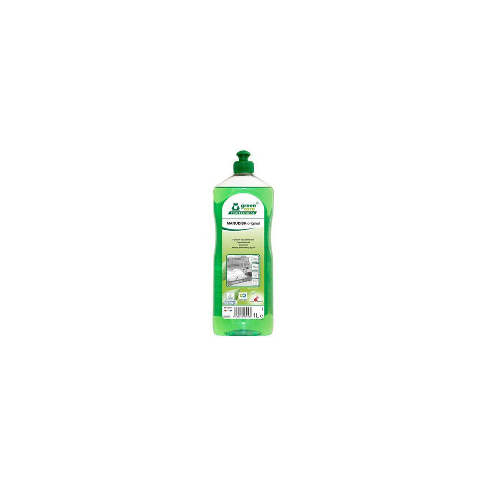Manudish original är ett ekologiskt, intensivt rengörande diskmedel Tar hänsyn till biologiska cykler, värnar om människors hälsa och städpersonalens säkerhet. Produktion med omfattande användning av förnybara råvaror och energi med hjälp av 100% vattenkraft, solenergi och jordvärme. Skonsam mot huden. Låg dosering. Oparfymerat. - pH-värde: 5.5 (koncentrat), 8 (brukslösning) - Oparfymerad - Dosering: Dosering i förhållande till användning och nedsmutsningsgrad. Följ instruktionerna nedan. Lätt diskning: 2-4 ml/5 liter (0,04 - 0,08 %). Normal disk: 4-6 ml/5 liter. - Utseende: Ljusgrön vätska