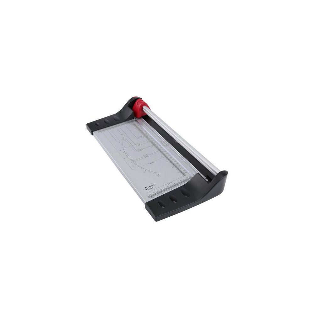 Skärmaskin OLYMPIA TR 3210 A4 har en kapacitet på 10 ark åt gången, med roterande blad för proffessionell användning. Skärmaskinen fungerar utmärkt för att exempelvis klippa ut foton, kort, tryckt material och laminerat papper. OLYMPIA TR 3210 A4 har en solid metallplåt som bas och gummifötter under som hjälper till att förhindra att maskinen glider iväg vid användning. - Max.pappersformat: A4 - Klippkapacitet: Max. 10 ark, (80 g/m2) - Arbetsbredd: 320mm - Arbetsplattans storlek: 320x170mm