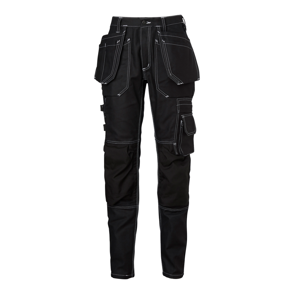 Hantverksbyxa i dammodell med förböjda ben och knäfickor i CORDURA®. Har två framfickor, två bakfick or och löst hängande spikfickor, alla förstärkta med CORDURA®. Utrustad med flera praktiska fickor o ch en reglerbar hammarhank. Upptäck Top Swedes 316 Trousers w, en hantverksbyxa speciellt designad för kvinnor. Med förböjda ben och knäfickor i slitstark CORDURA® erbjuder dessa byxor både komfort och hållbarhet. De praktiska s pikfickorna, fram- och bakfickorna är också förstärkta med CORDURA®, vilket säkerställer långvarig a nvändning i tuffa arbetsmiljöer. Vänster hängficka har en extra ficka, medan höger hängficka kommer med tre mindre extrafickor och en dold ID-kortsficka. Den framflyttade tumstocksfickan, utrustad med två knivhållare, hälla och pennfack, ger ökad bekvämlighet. Dessutom finns en benficka med dold dra gkedja, pennfack och telefonficka samt en praktisk D-ring. Med en reglerbar hammarhank och genomtänk ta detaljer är 316 Trousers w det perfekta valet för kvinnliga yrkesverksamma som kräver både funkti onalitet och stil.