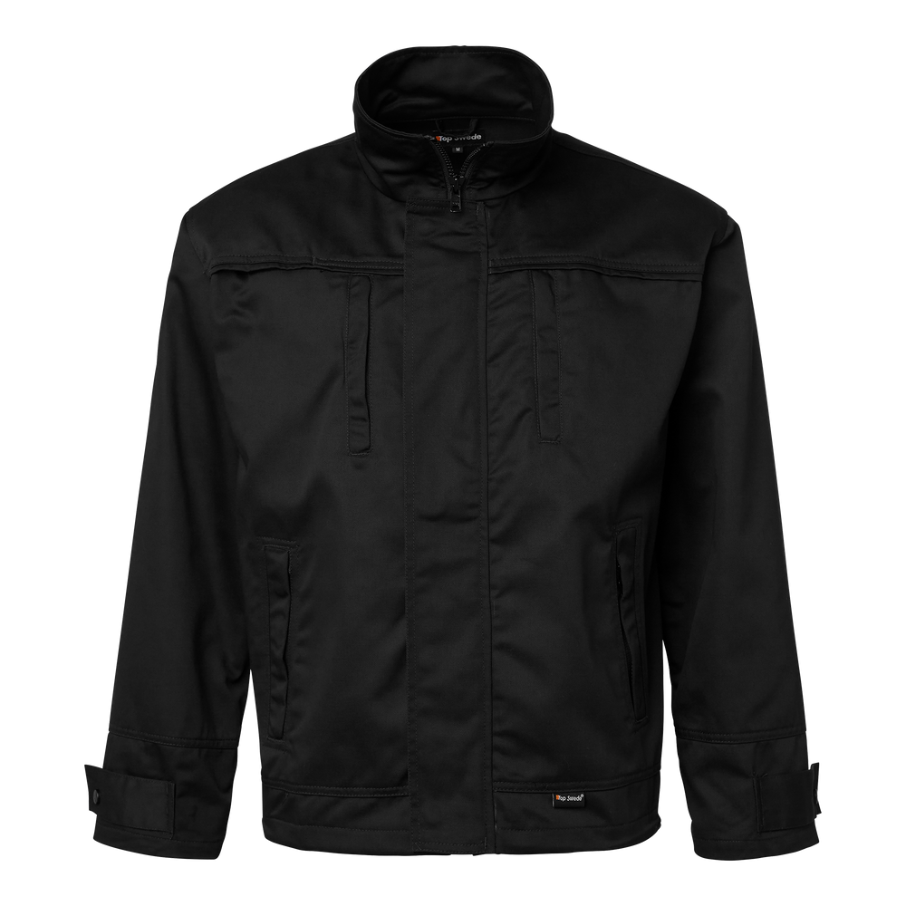 Midjejacka med två bröstfickor och två framfickor med dragkedja. Telefonficka i ena bröstfickan, utd ragbar ID-kortsficka, justerbar ärmlinning och dragsko i nederkant. Perfekt för krävande arbetsmiljö er. Upptäck Top Swedes 3870 Jacket, en slitstark midjejacka designad för yrkesverksamma inom bygg och in dustri. Tillverkad av en hållbar blandning av polyester och bomull, erbjuder denna jacka både komfor t och hållbarhet under hela arbetsdagen. Jackan har två bröstfickor och två framfickor med dragkedja för säker förvaring, samt en telefonficka i ena bröstfickan. En utdragbar ID-kortsficka gör det enk elt att visa ID när det behövs. För extra bekvämlighet har jackan justerbar ärmlinning och en dragsk o i nederkanten för en perfekt passform. Välj 3870 Jacket för en kombination av funktionalitet, håll barhet och komfort som uppfyller de högsta standarderna inom arbetskläder, perfekt anpassad för kräv ande arbetsmiljöer.