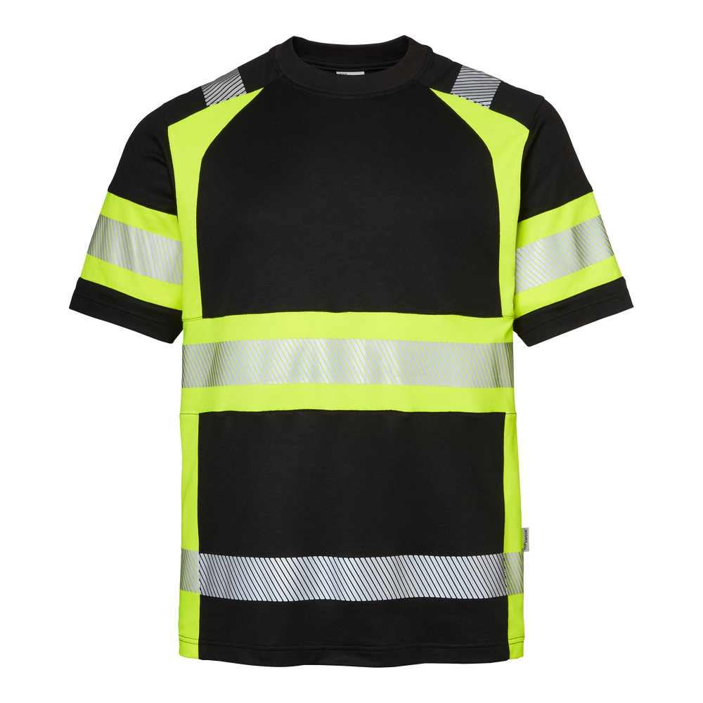 Varsel T-shirt i klass 1 med rund hals och utrustad med segmenterad reflex för extra flexibilitet. P erfekt för yrkesverksamma inom bygg och industri som kräver extra synlighet. Varsel T-shirt i klass 1 med rund hals och utrustad med segmenterad reflex för extra flexibilitet. P assformen erbjuder extra komfort och rörlighet, vilket gör den idealisk för fysiskt krävande arbetsm iljöer. Tillverkad av en blandning av polyester och bomull gör den perfekt för dagligt bruk. Den flu orescerande gula färgen och reflexdetaljerna uppfyller klass 1 standard, vilket garanterar synlighet och säkerhet under hela arbetsdagen. Välj t-shirten för en pålitlig och bekväm lösning som hjälper dig att hålla dig synlig och säker på jobbet.