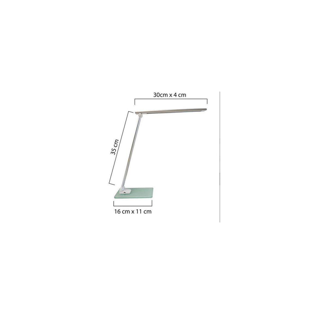 Praktisk lampa med snygg och stilren design! POPY är en LED-skrivbordslampa med högeffektiv 5W LED-belysning. Med hjälp av switchströmbrytaren på foten kan du variera de tre färgtemperaturnivåerna med ett kort tryck och ljusintensiteten med ett kontinuerligt tryck. Det finns ytterligare ett läge med mjukt ljus vid lampfoten som kan användas som nattbelysning. Välj den belysningskvalitet som passar bäst för dina aktiviteter. POPY utmärks av de fina och rena linjerna med en fot i glas, vilket ger den en elegant och modern karaktär. Det är en perfekt accessoar som ger ditt kontor en modernistisk touch. Den är mobil tack vare den avtagbara USB-kabeln som utgår från en 220V-drivrutin och kan därför anslutas direkt till en USB-port (i en dator eller ett vägguttag) och är därför lätt att ta med sig (till kontoret, konferenslokalen eller på resan). Den 1 cm tjocka vikttåliga glasfoten gör lampan stabil för optimal användning. - LED-belysning - Färg: Silver/vit