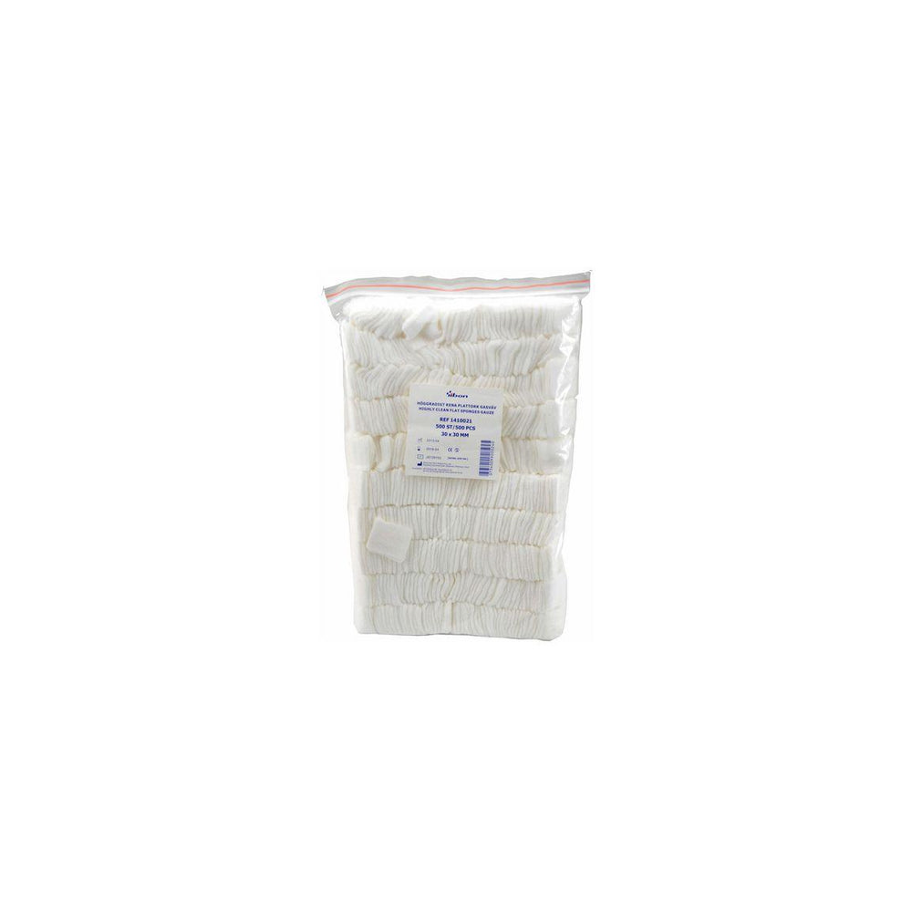 Flat wipe gauze - High degree of cleanliness - Latex free - Colour: White - Avd fp design: Resealable plastic bag - Autoclavable: Can be sterilised in EO and steam 135 oC - CE marking: Class 1 according to MDD - Manufacturing: China - Certification: ISO 9001:2008 & ISO 13485:2012 - Storage: 5 years from the date of manufacture, in a dry and cool place without direct sunlight or - influence of heat source - 100% bleached cotton - 17 threads - Warp: 104 ± 4 - Weft: 72 ± 4