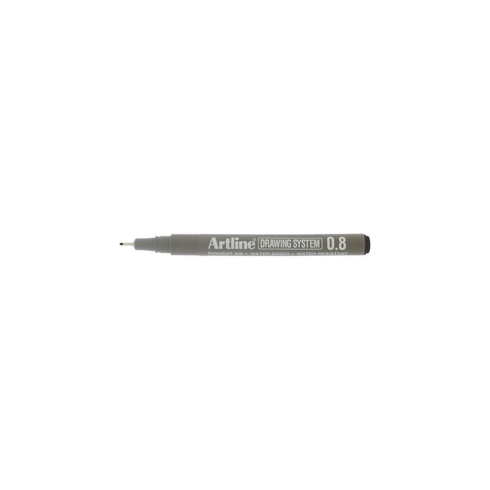 A fineliner that is waterproof after it has dried Drawing pen with a metal-encapsulated plastic tip with a tip width of 0.8 mm. Waterproof after drying, does not fade, water-based pigment ink without Xylene. Colour: black. - Tip width: 0.8mm Text colour: Black - Pen body colour: Grey