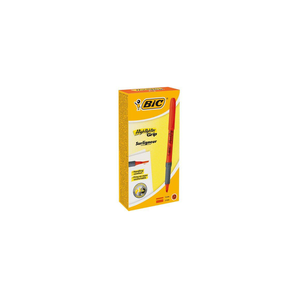 Bic Briteline Grip with round pen body and rubber grip. Liquid ink. Bevelled tip. Line width 1.6 - 3.4 mm - With cap - Bevelled tip - Line width 1.6 - 3.3 mm - Text colour: Fluorescent Orange - Pen body colour: Same colour as text colour