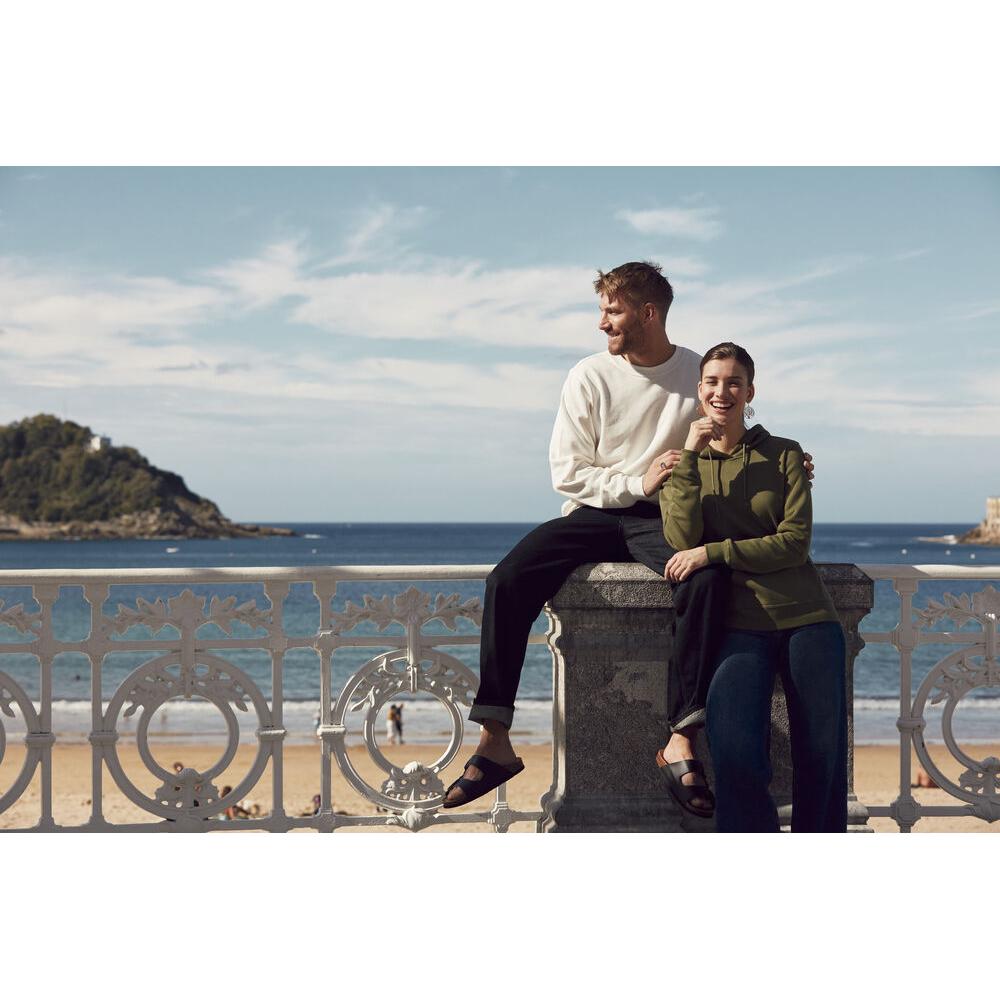 A unisex hoody made from a blend of cotton and recycled polyester. It includes the following features: