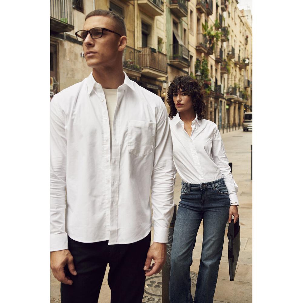 Long sleeved oxford shirt with button adjustment at sleeves, yoke at back, chest pocket and button adjustment under collar. Fabric with easy care finish.