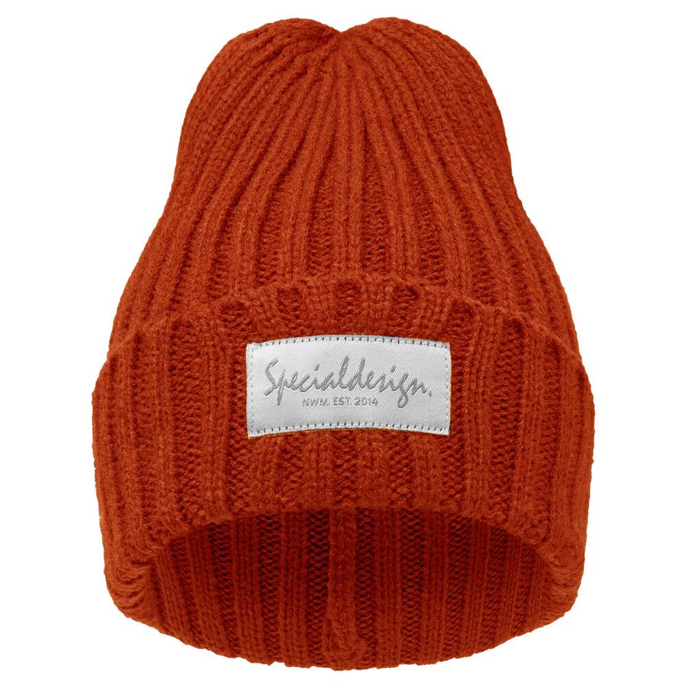 Simple knitted beanie made of acrylic with ribbing and a folded cuff. No visible seams at the top.