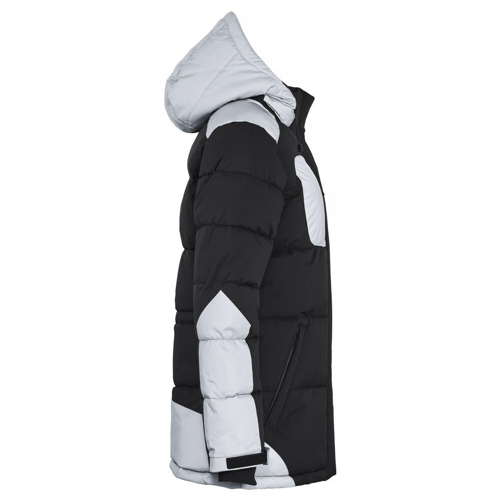 A warm padded jacket designed for cold and dark conditions.