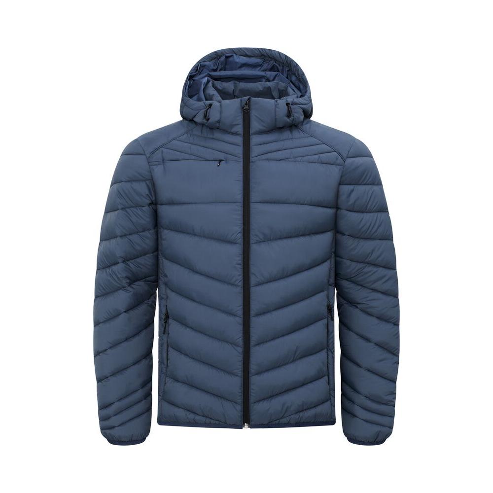 A warm yet lightweight jacket with down-like padding, made from 100% recycled polyamide.