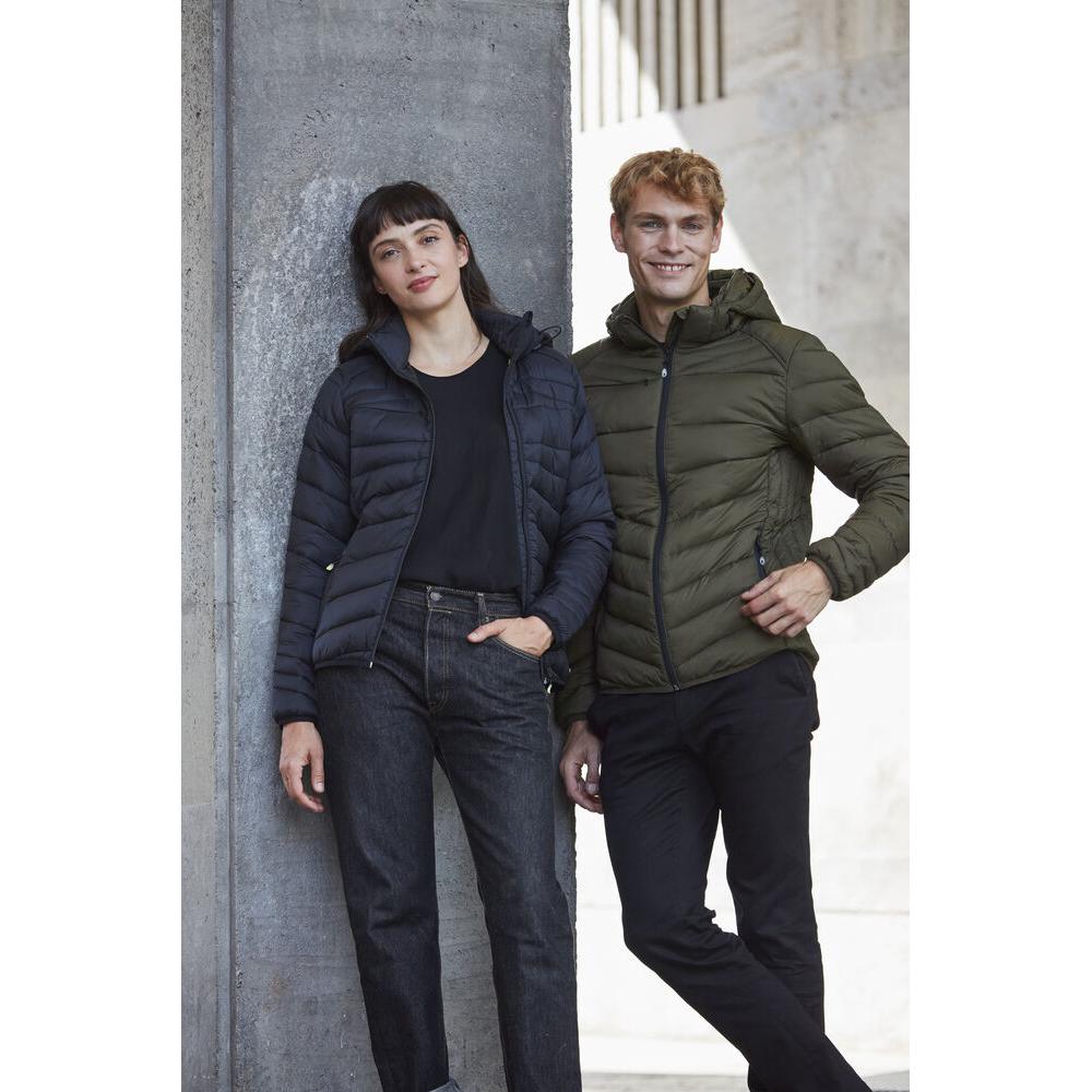 A warm yet lightweight jacket with down-like padding, made from 100% recycled polyamide.