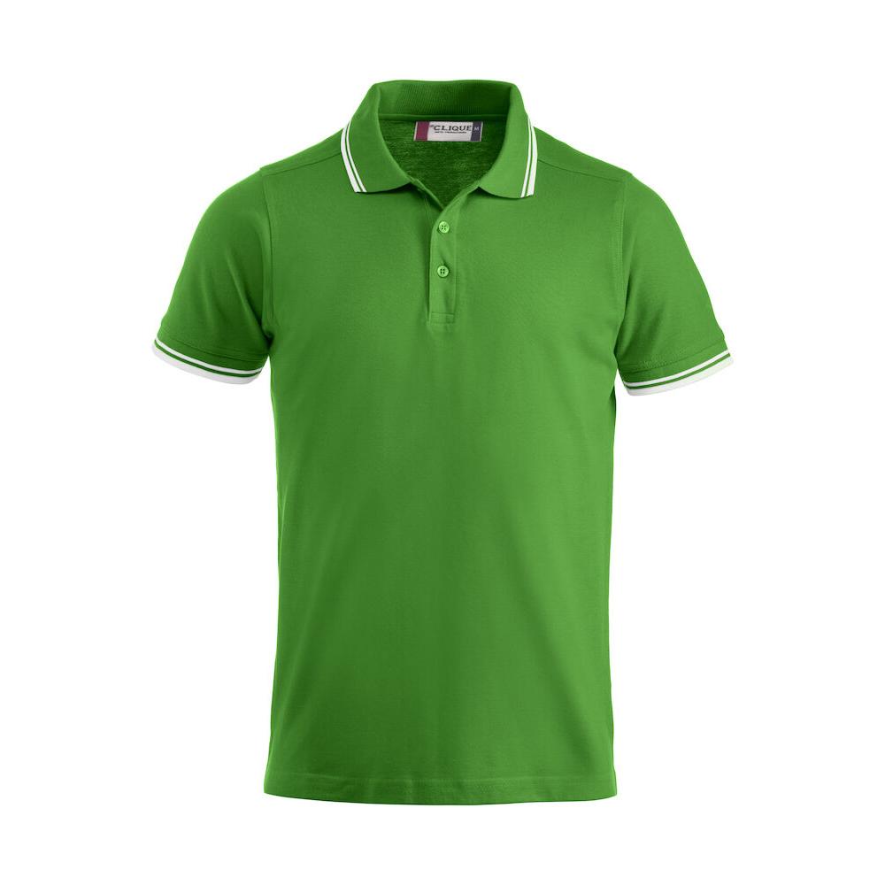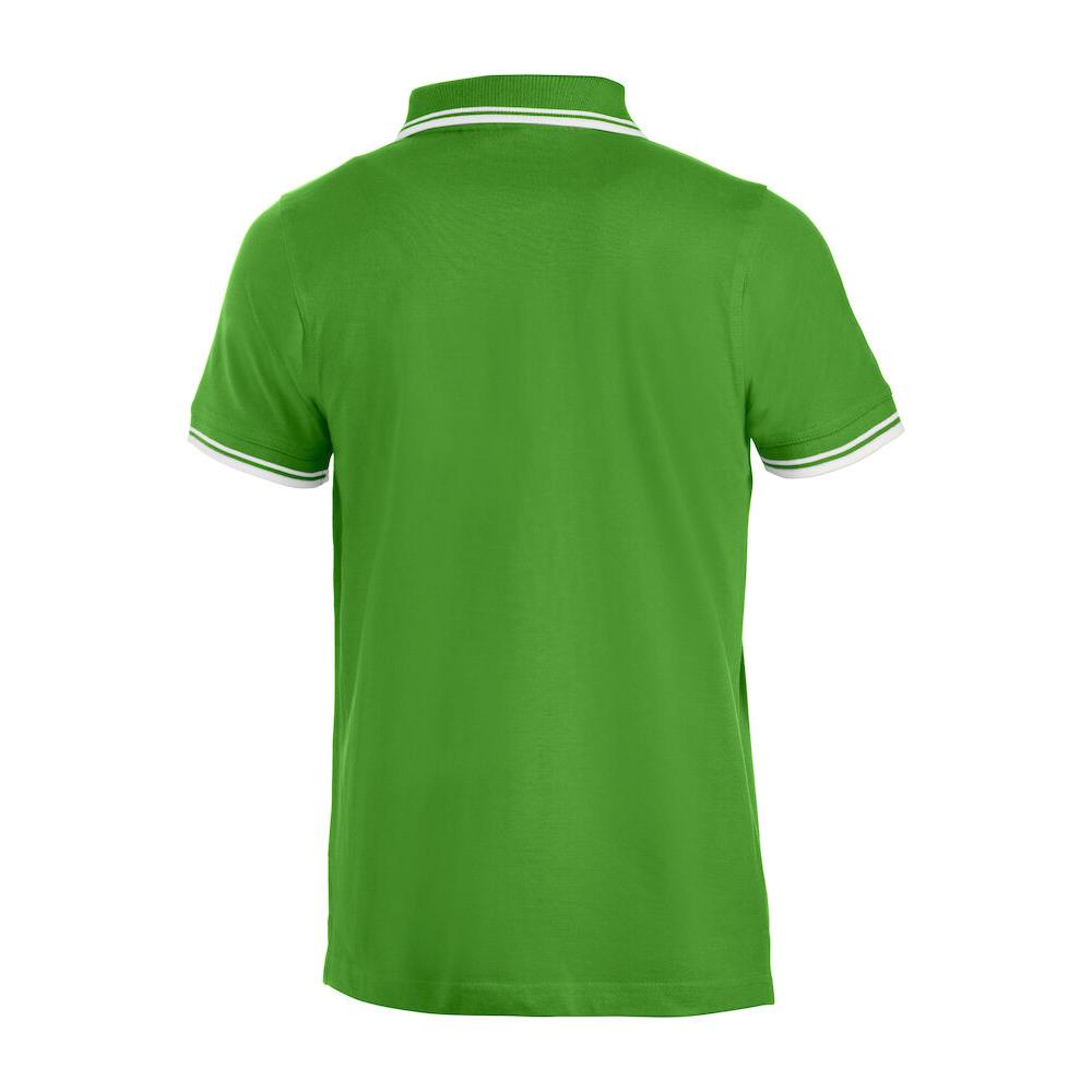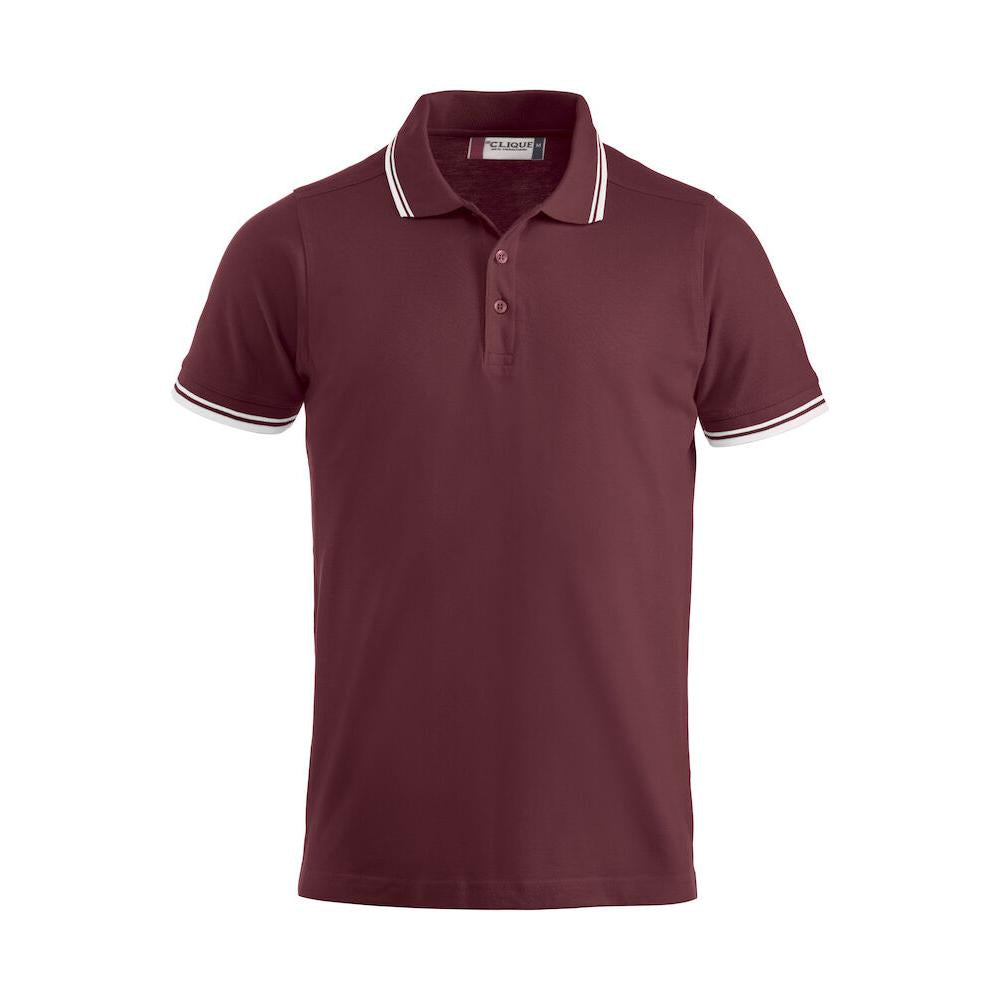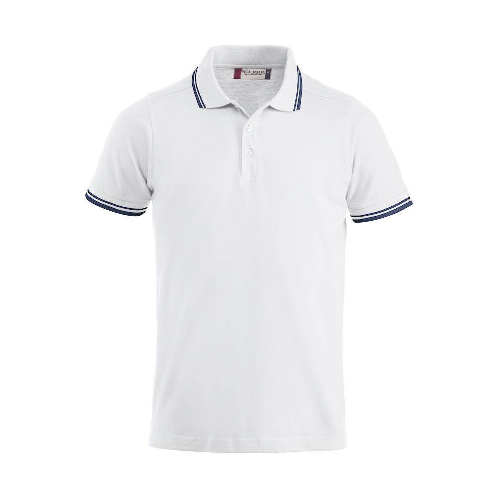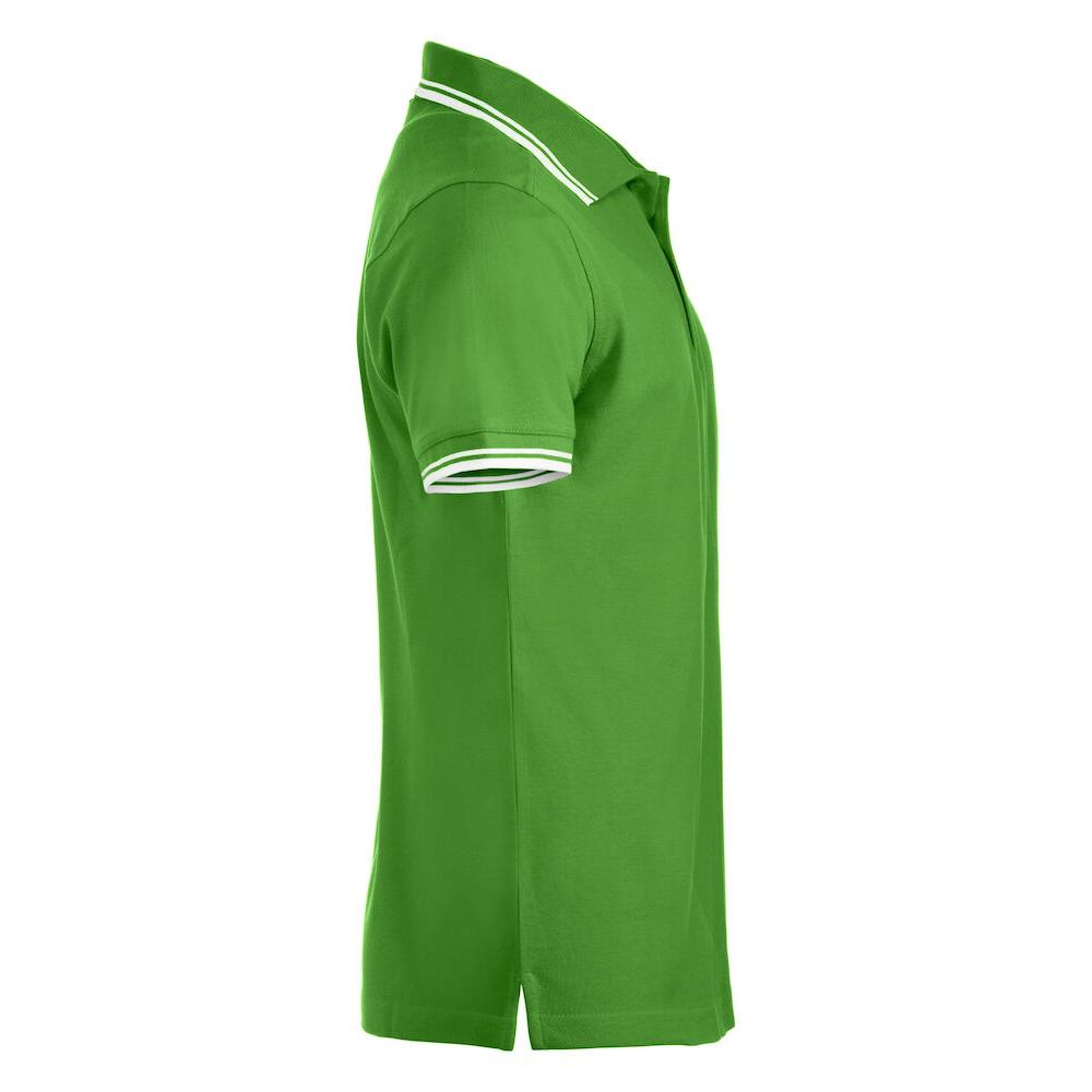 Polo piqué with side vents and contrast colour stripes on collar and sleeve endings.