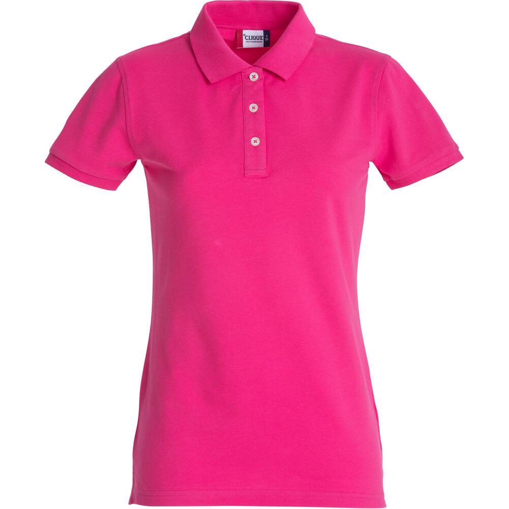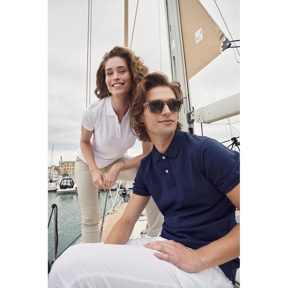 A high quality polo with a good stretch quality. 2 buttons with pearl look on man men's and 3 on ladies. Herringbone neck tape and Bartac cross in side split. Pre-shrunk, and with enzyme treatment for a soft feeling.