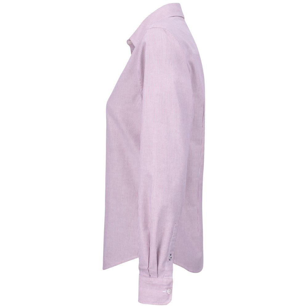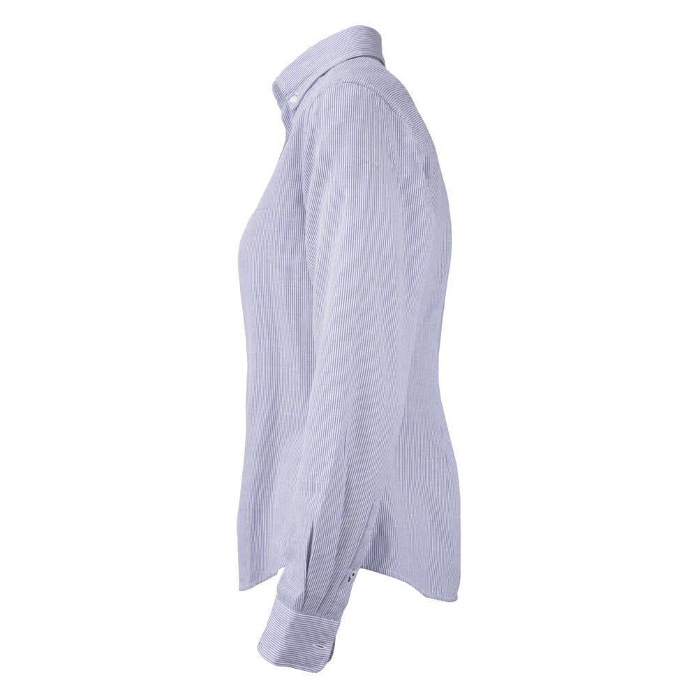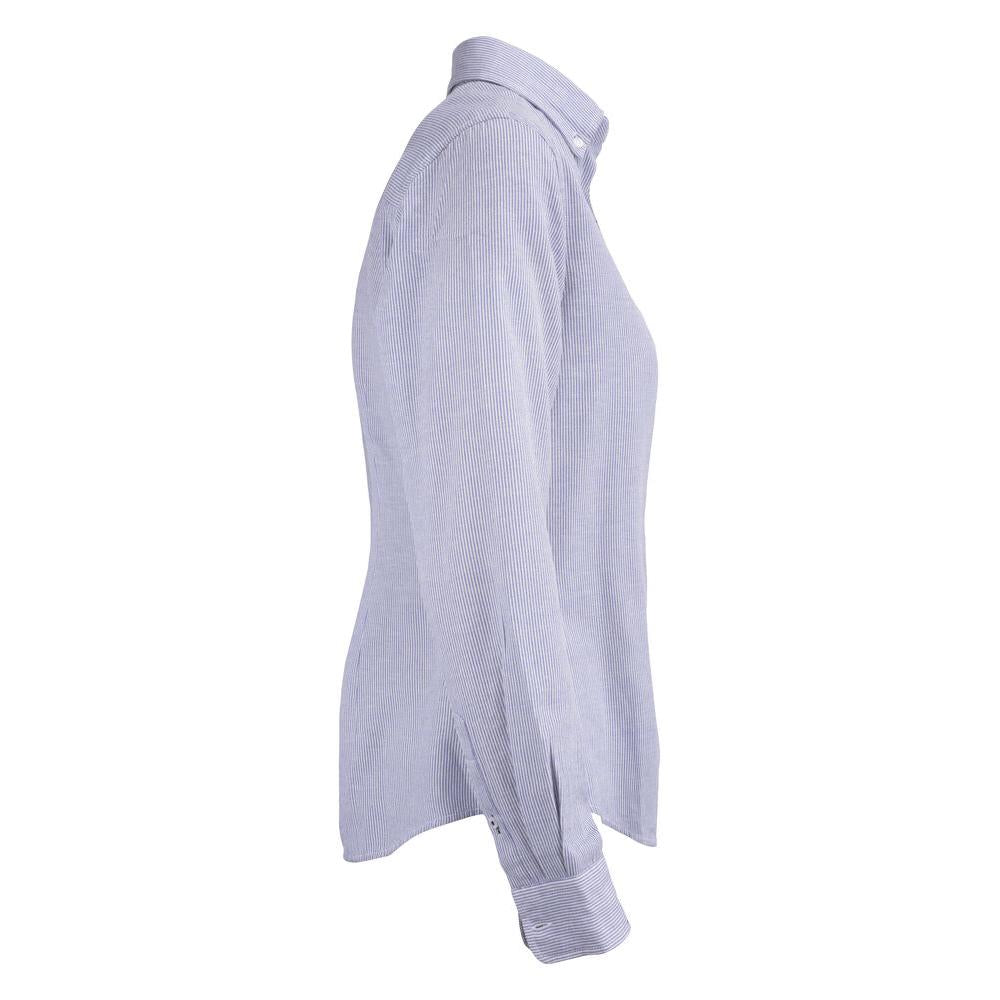 - Ladies’ shirt has a five needle side seam for a shaped waistline