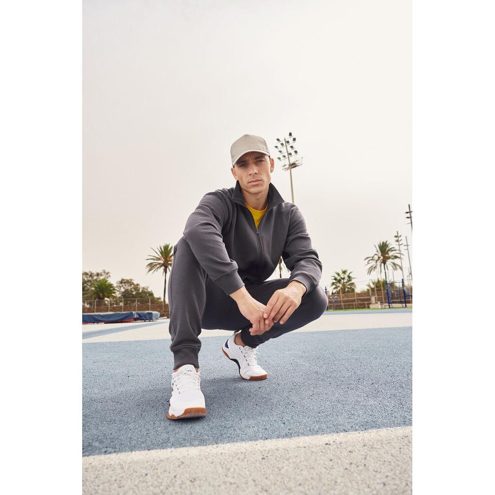Unisex sweatpants made from a cotton and recycled polyester blend. Features two front pockets and one hidden zipped pocket on the side seam. The elastic 2x2 rib has double stitching at the waist and bottom leg. Includes a drawstring at the waist and an easy-to-remove label for rebranding. The soft stabilized fabric is designed for intensive washing with anti-pilling properties.