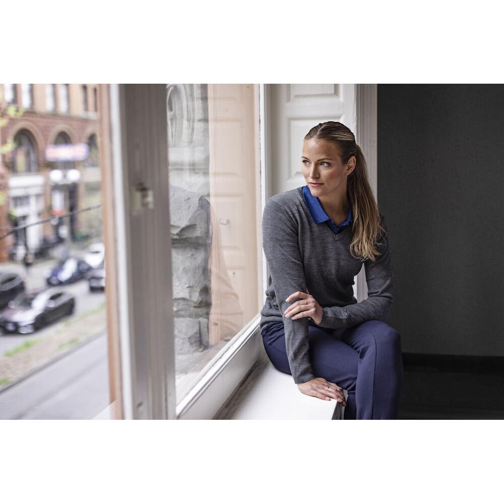 Stylish and sleek, this sweater is crafted from a luxury yarn blend of pure merino wool and acrylic. Vernon V-neck provides a timeless look, ideal for a business setting. Perfect for layering all year around, wear it over one of our signature oxford shirts. Modern single layer rib collar and linked seams with full-fashion construction create a classic look. - Engineered ribbing detailing bottom hem, sleeve cuffs and collar- Tonal logo embroidery