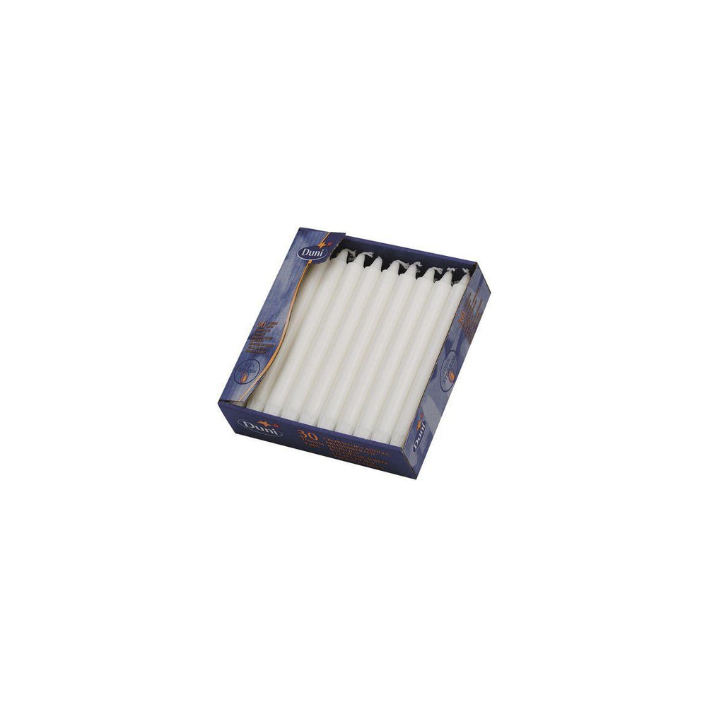 Made from 100% stearin, these quality candles burn with a soot-free flame and look great on any dining table. Duni crown candles are a stylish addition to any dining table at home or in professional settings such as restaurants or cafés. These quality candles have a burn time of around nine hours and are made from a renewable product, making them an environmentally conscious choice. They are long and narrow and have a small crown at the top, so they will fit nicely in your favourite candle holder. They come in a variety of sizes to choose from - Elegant candle for the dining table - Made from 100% stearin - A more environmentally friendly choice - 9 hours burn time - One pack contains 30 candles - Height: 250 mm - Colour: White - Nordic Ecolabel: Licence number 388001