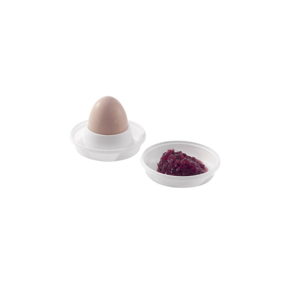This disposable Duni egg cup is a great indoor and outdoor solution to make sure the eggs stay firm and stable on the plate. Make sure the boiled eggs look beautiful and appetising and stay safely on the plate, for example as part of an indoor buffet or during an outdoor picnic. Classically designed to fit in with any interior design theme, this lightweight egg dish is an eco-conscious choice for consumers who are concerned about keeping their carbon footprint down. Reduce time and costs by using these disposable cups, which still look great in front of guests. - With shell rim - Recyclable - Classic design - Material: Expanded polystyrene - Colour: White - Capacity: 100 per pack - Dimensions: 10 cm - Food grade