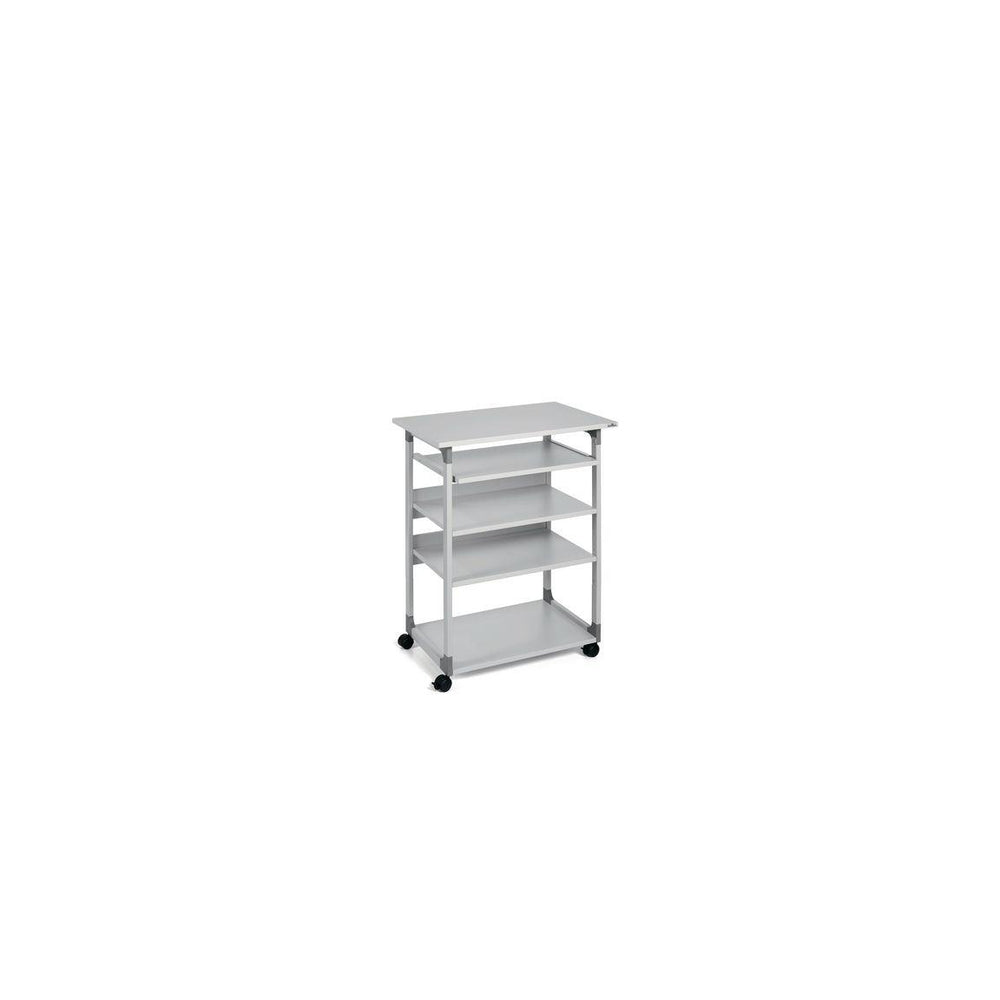 Computer desk on wheels that is practical and useful in offices, conference rooms or for mobile workplaces. Durable shelves where the keyboard shelf is extendable and height adjustable in 30 mm increments up to 1090 mm for a comfortable working position. The monitor shelf can be adjusted between 960-1240 mm in 20 mm increments. Metal frame with scratch-resistant polyester coating and fibreglass reinforced plastic corners. 4 swivelling castors, 2 of which have brakes. Easy to move and stable when 'parked' - Supplied in flat pack with assembly instructions - Maximum load 30 kg - Dimensions top shelf: 750 x 534 mm (W x D) - Dimensions keyboard shelf: 586 x 420 mm (W x D) - Dimensions bottom shelf: 610 x 464 mm (W x D) - Dimensions centre shelves: 610 x 434 mm (WxD) - Total dimensions: 950-1150 x 750 x 564 mm (H x W x D).