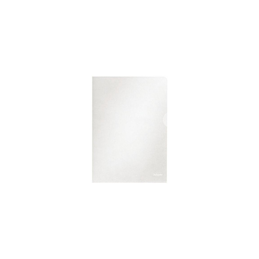 Quality Esselte Standard A4 folder in recyclable PP film These Esselte® standard sized even-cut folders are a filing solution that adds an extra layer of protection for all your papers. These L-shaped folders have a high-quality, embossed finish, making them copy-proof so you don't have to worry about ink lifting. The transparent cover allows you to easily see the contents of reports and presentation materials. The Esselte® flush cut folders are a great addition to filing systems to keep documents organised and secure. - Opens both at the top and from the right side - Thumb holes for document access - Material: Polypropylene - Thickness: 0.11 mm - Dimensions: A4 - Colour: Transparent - Pre-consumer recycled plastic 30% - Material: Polypropylene