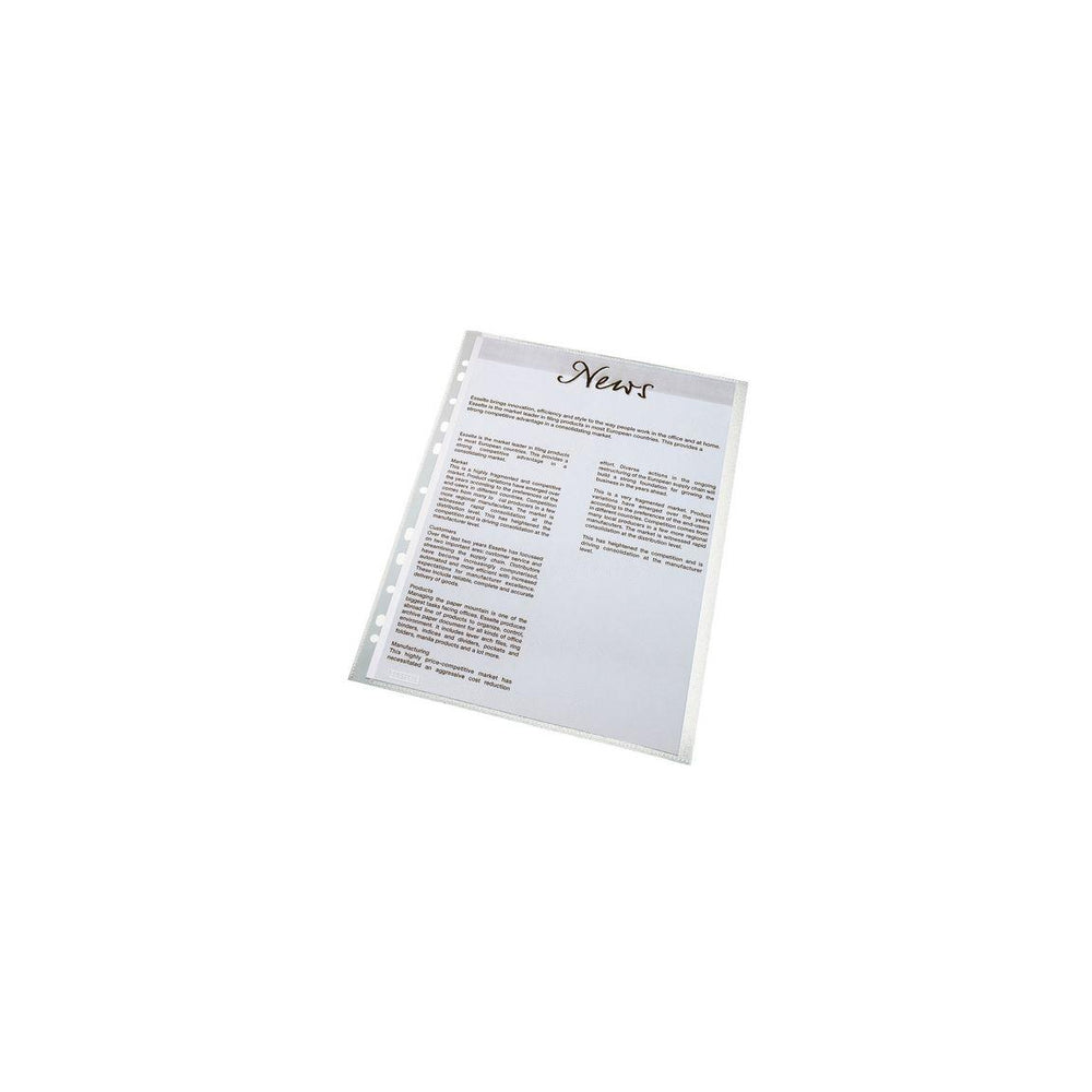 Protect your documents with these copy-proof punched pockets from Esselte, which are made from recyclable polypropylene. These A4 punched pockets from Esselte are made from 115 micron PP film, making them not only flexible but also durable and long-lasting. The clear document protectors are perfect for protecting work documents, technical drawings and presentations from dirt and damage. They are also die-cut, so you can store them in ring binders or forked binders. The pockets have openings at the top so you can easily insert and remove papers. They also have a smooth surface, protecting any signed or printed documents. These document protectors from Esselte are available in portrait format and are copy-proof. - Copy-proof die-cut pockets - Top opening - Supported format: A4 - Holes: 11 - Material: Polypropylene - Thickness: 115 microns - Colour: Translucent - Pre-consumer recycled plastic 30% - Material: Polypropylene