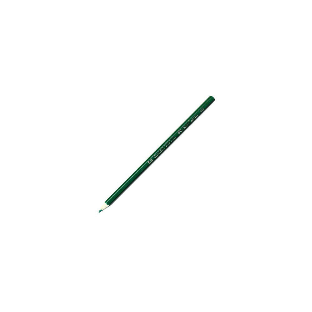 Stock up on these Faber-Castell® Classic coloured pencils in dark green to replenish supplies in schools and offices. This pack of dark green Faber-Castell® Classic coloured pencils can be used in schools and offices, where usage rates are high. The pigment corresponds exactly to the colour of the outside of these pens. The hexagonal pencils provide a comfortable grip when writing, drawing or marking. - Suitable for schools, artist studios, art classes - Covers of the same colour - Suitable for all age groups - Number of pencils: 12 - Colour: Dark green