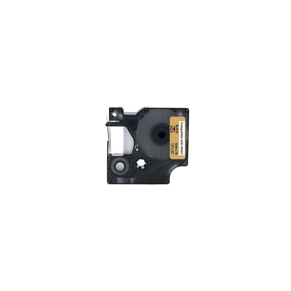 Tape 12mm Black on Gold - Compatible with: DYMO LabelMANAGER 150 kit, 350, 350D, 450, 450D, PC, LabelPOINT 250, 250 kit case, 350, 350 kit case - Self-adhesive polyester tape for quick and easy application - Includes: 1 roll - Dimensions: 12mm x 7m - Labels can be removed without leaving any adhesive residue - Adheres to almost all clean and smooth surfaces including plastic, paper, metal, wood and glass - Easily remove the protective film for quick and easy application - Water resistant - UV resistant - Temperature resistant - Colour: Black on Gold - Made from 67% recycled material - Does not contain PVC
