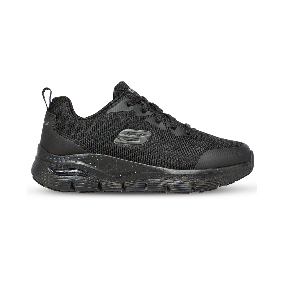 Well-liked Work model from Skechers with Arch fit insole, specially designed to provide the best arc h support, which helps to distribute the weight of your body, provides cushioning and comfort. The s hock-absorbing midsole gives additional comfort and the heel is shock absorbing. The shoe has a text ile lining, padded heel and a non-slip outsole. ESD approved. Well-liked Work model from Skechers with Arch fit insole, specially designed to provide the best arc h support, which helps to distribute the weight of your body, provide cushioning and comfort. The sh ock-absorbing midsole gives additional comfort and the heel is shock absorbing. The mesh upper has d etails in TPU, both at the toe section and at the loops for increased durability. The shoe has a tex tile lining, padded heel and a non-slip outsole. ESD approved.