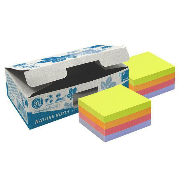 The notes can be easily attached and moved around without damaging the surface. These Info Notes are certified with Blue Angel, made from recycled paper. The adhesive used is water-based and solvent-free.