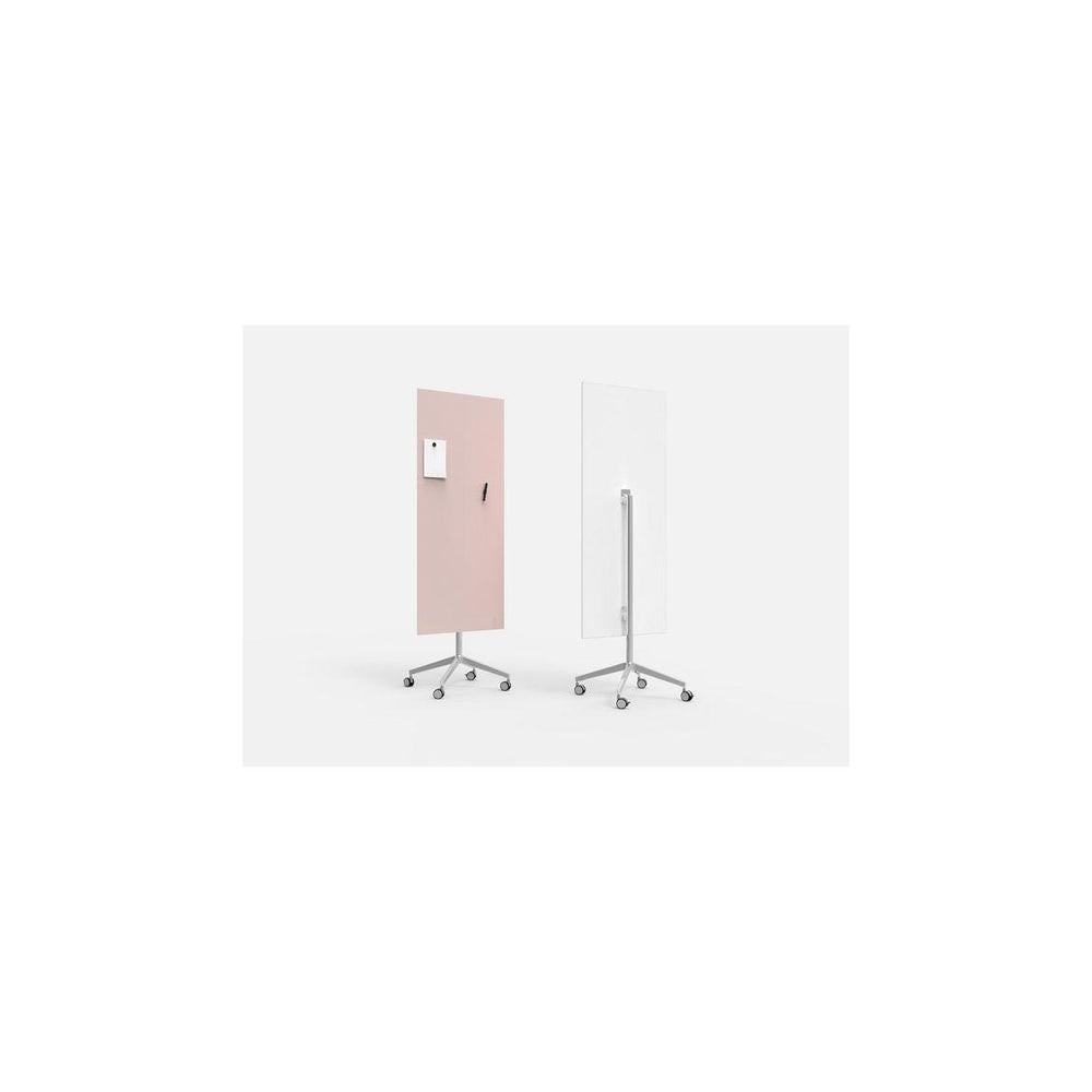 A very beautiful glass board that creates a modern impression in the workplace. Available in several colours where you can either keep it plain or why not liven up a wall. Mobile glass board in optically tempered glass which gives clear and clean colours. It is magnetic but requires extra-strong magnets. The board is white with polished aluminium legs and feet - Dimensions 650x1960mm - Colour: Pink (Polished aluminium legs and feet) - Surface: Optically tempered glass - Magnetic: Yes (requires extra strong magnets) - Includes: Flipchart hooks