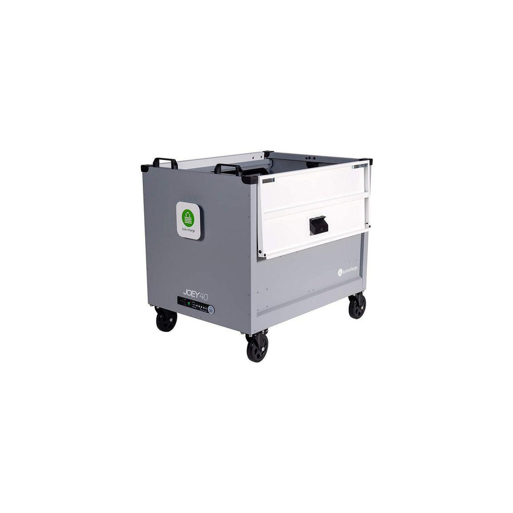 Charging station that can store and charge up to 40 devices simultaneously. Never burn a fuse again! With the ECO Safe unit included in Carrier and Joey charging trolleys. The unit slowly increases the power supply to prevent fuses from blowing and you can even charge a few devices at a time. The Joey 40 Cart can store almost any device in its compartments, such as laptops, tablets, iPads or Chromebooks with a screen size of up to 17' - with or without a case. A safe, efficient and future-proof energy management system that charges 40 devices simultaneously. ECO Safe ChargeTM can manage the energy needs of almost any device by gradually charging each group of devices in stages - Top-loading trolley means you don't have to bend down - Room for 30 devices - Material: High-quality steel - Dimensions: (WxDxH) 64.6 x 89.1 x 83 cm - Net weight: 50 kg (trolley only)