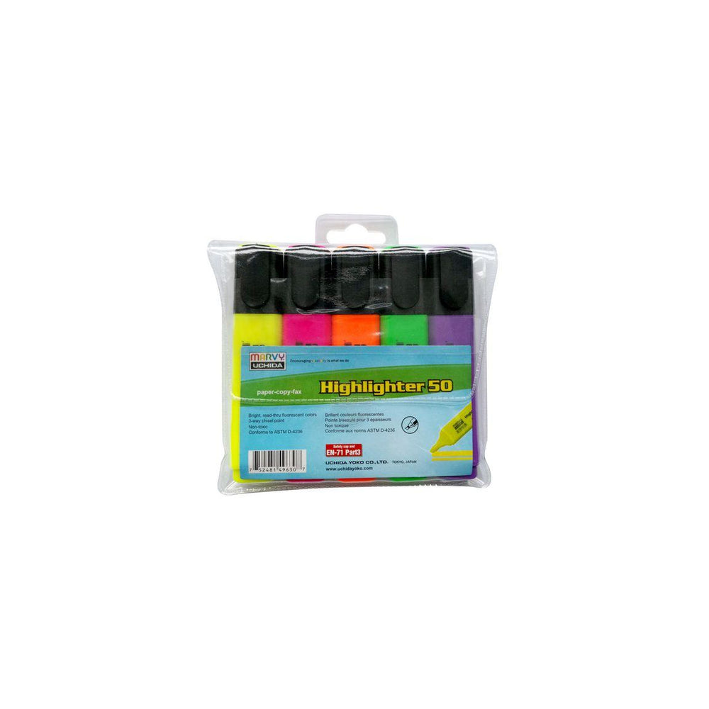 Marvy® highlighter The 50 with flat pen body is suitable for use in the office, at school and at home. The flat pen body provides a firm grip and does not slip in your hands. The highlighter has a slanted tip that can draw lines of different widths, so you can create sharp, thick and thin lines. The water-based ink is reliably copy/fax-proof, won't smudge when you mark and text remains visible after copying. The handy pocket clip is easy to carry. - Hooded - Bevelled tip - Line width: 1-5 mm - Text colour: Yellow - Pen body colour: Yellow