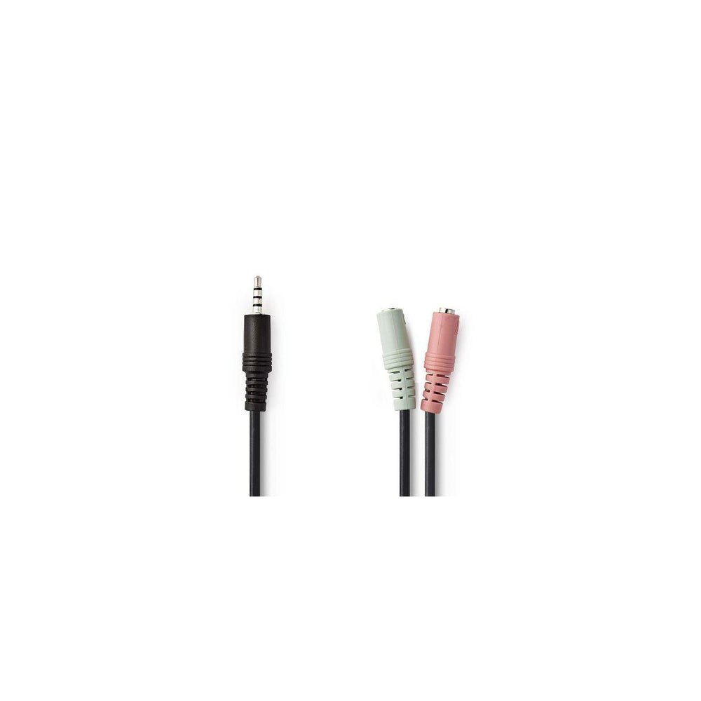 Adapter NEDIS, splitter cable, provides the perfect solution to connect headphones with separate audio cable and microphone plug for modern laptops/computers with a single headphone jack. - 3.5 mm Male - 2x 3.5 mm Female - Length: 20 cm - Colour: Black