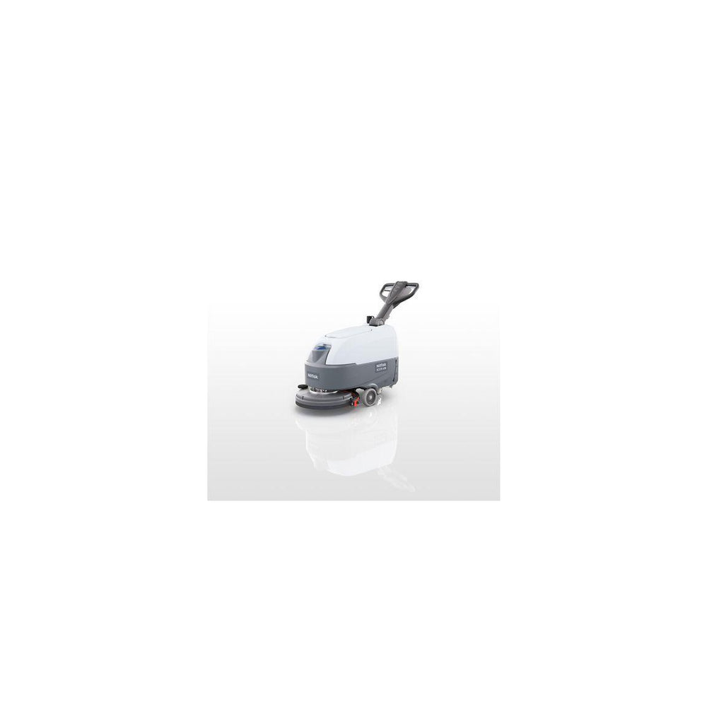 Scrubber dryer for efficient cleaning in confined spaces. The SC370 walk-behind scrubber dryer offers daily floor cleaning with easy operation, reliable performance and reduced water and detergent requirements, for better and more efficient floor cleaning. Control panel with one-button start and main controls - easily accessible to the operator Quiet mode for non-disturbing daytime cleaning in busy public spaces or sound-sensitive areas. Lock squeegee in upright position for double scrubbing and more efficient cleaning of difficult stains and high traffic areas - Ergonomic adjustable handle for best user experience - Folds for easy storage and transport - Scrubbing deck is 43cm (17") - Clean/dirty water tank 25 litres