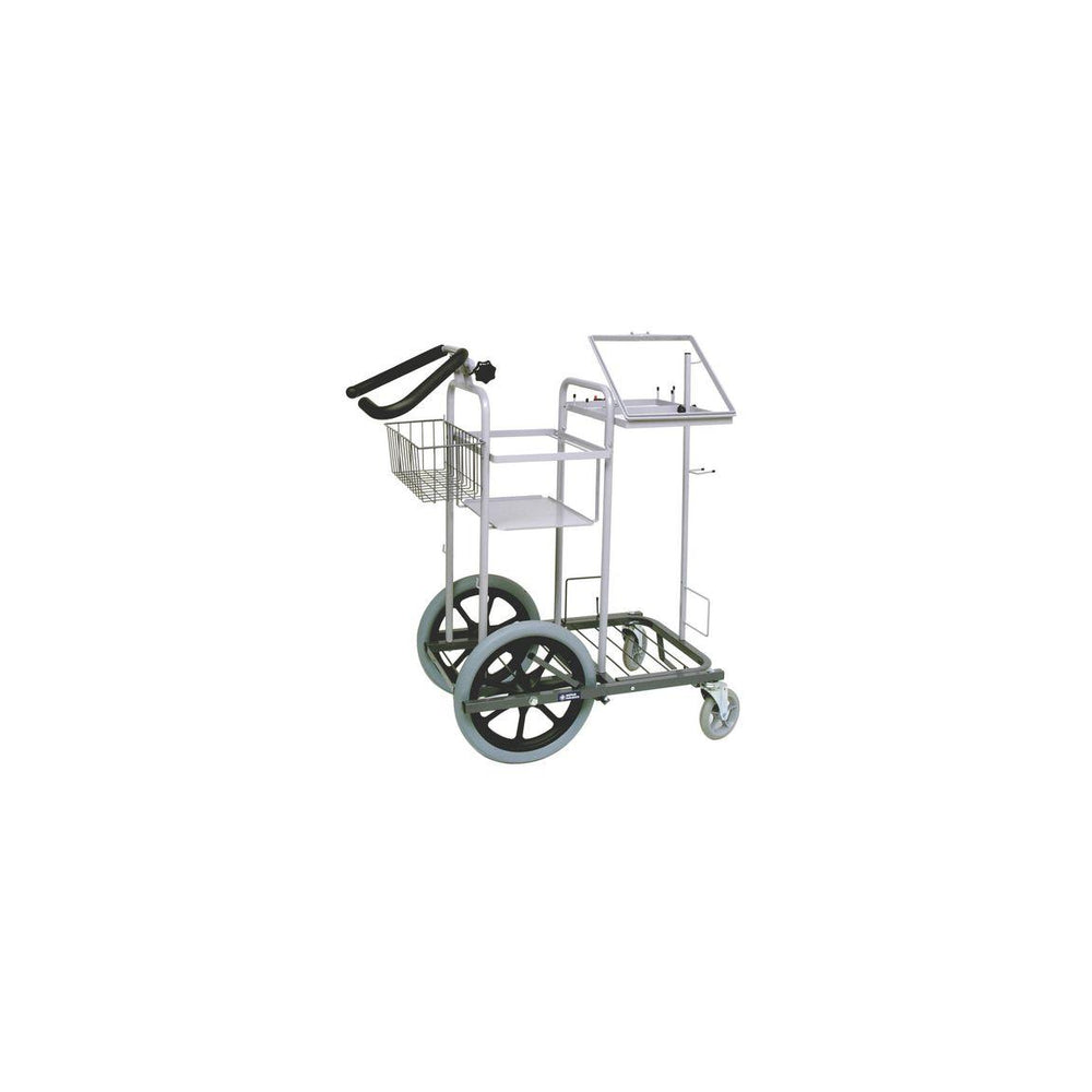 The large robust wheels make the trolley easy to handle, especially on stairs, but work just as well when the trolley needs to be moved between properties, e.g. over high thresholds or on slushy ground. The trolley can also be equipped with fixed front wheels for better stability on uneven surfaces. Grip-friendly, adjustable and soft handle that provides great opportunities for varying driving positions. Dimensions: L920xW560xH1110 mm - Supplied without metal shelf, only space for crates.