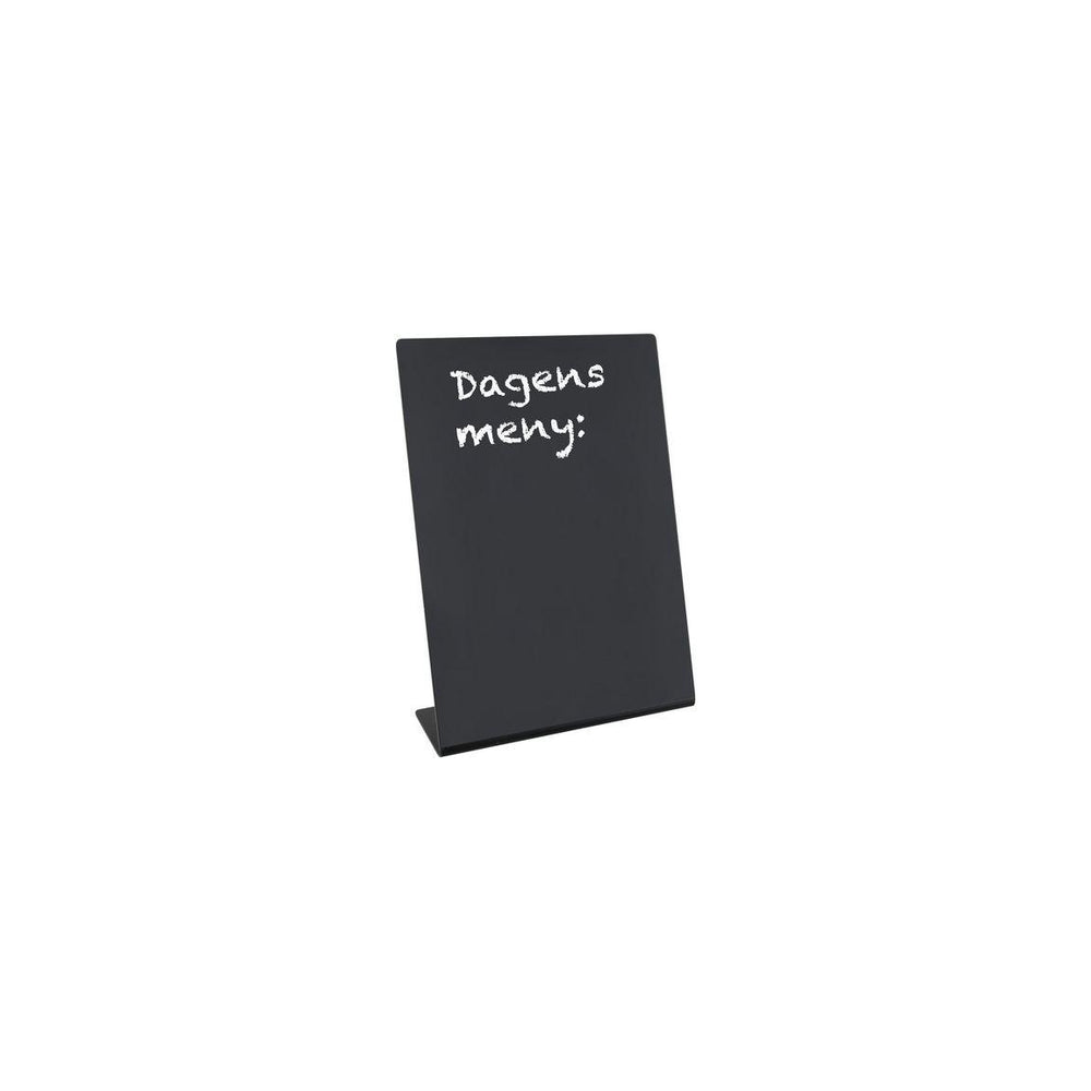 A4 acrylic pen stand with one side matt black for writing with chalk pens. Note: do not use crayons as they scratch the plastic - Format: A4 - One-sided inclined