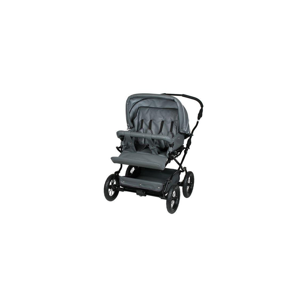 Stroller with grey shell without PVC, easy to clean. The pushchair has a removable sun canopy and a reversible seat, as well as a large removable storage basket with plenty of storage space. The backrest can be adjusted to recline (but cannot be laid completely flat). In addition, the stroller has a folding arch and adjustable footrest. The tyres are removable and have ball bearings. - Dimensions: 118 x 78cm - Dimension: 96cm lying - Height: 71 - 109cm
