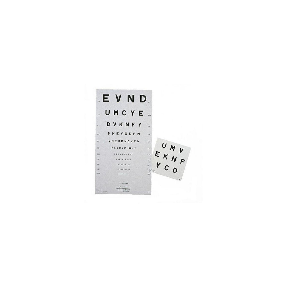 Visual acuity and pointing device with a reading distance of 3 metres. The EVND 3m visual display board consists of a visual display board and a touch panel. The EVND board fits in the HE-Mini light box and in the HE-Universal light box. Made of white coated plastic - Reading distance 3 metres - Graduated visual acuity 0.1 - 1.25 - Dimensions: 320 x 600mm