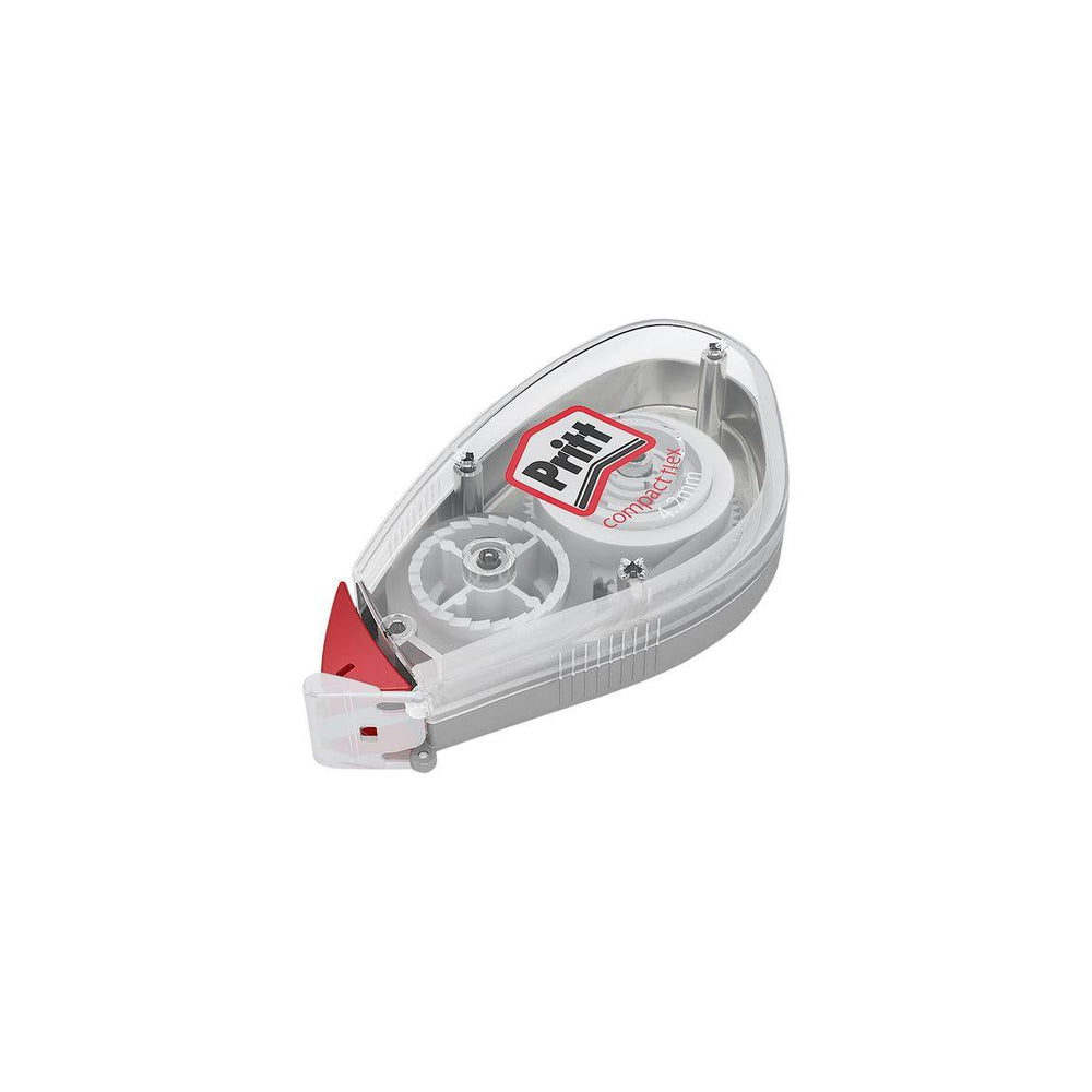 Correct typos quickly with the Compact Flex Correction Roller from Pritt, which now features two-way correction. The Pritt Compact Flex Correction Roller allows you to cover all types of typos, eliminating unsightly editing marks from your documents. It features a new and improved flexible tip for smooth and precise application. The tape dries instantly so the user can start writing right away. You can see how much tape is left thanks to the transparent cover. This product has dual functions: simply pull to correct an entire line, or turn it over and press to correct a single letter. It also has a cover that easily folds up to protect the tip. The Flex Correction Roller is encased in 50% recycled plastic, which is fully recyclable. - Flexible tip for smooth and consistent correction - Dry-applied for instant rewriting - Dual-action use: pull when you need to correct a whole sentence, or push if it's just one letter - Protective cap included to avoid damage to the tip - Easy to see how much tape is left thanks to transparent casing - Plastic casing made from 50% recycled paper - 100% recyclable - Dimensions: 4.2 mm x 10 m - Packaging: Hanging box
