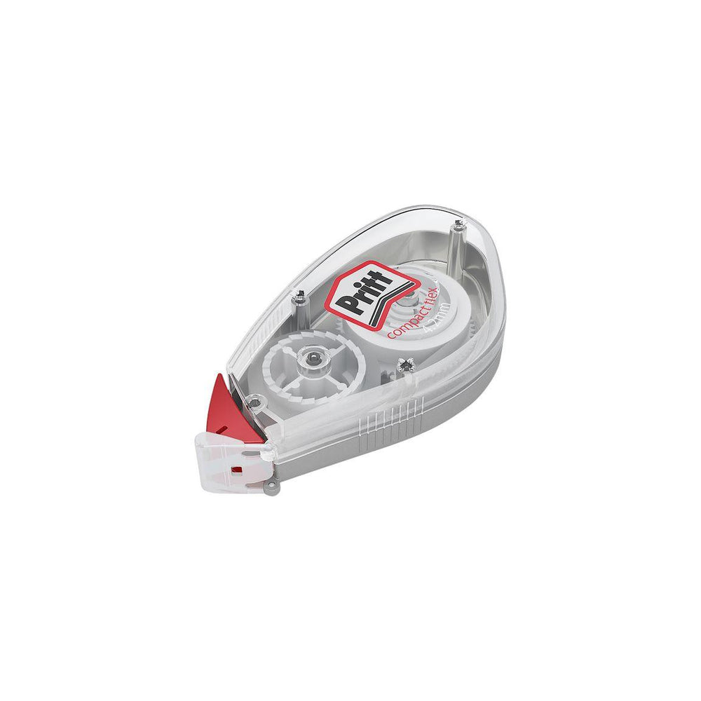 Correct typos quickly with the Compact Flex Correction Roller from Pritt, which now features two-way correction. The Pritt Compact Flex Correction Roller allows you to cover all types of typos, eliminating unsightly edit marks from your documents. It features a new and improved flexible tip for smooth and precise application. The tape dries instantly so the user can start writing right away. You can see how much tape is left thanks to the transparent cover. This product has dual functions: simply pull to correct an entire line, or turn it over and press to correct a single letter. It also has a cover that easily folds up to protect the tip. The Flex Correction Roller is encased in 50% recycled plastic, which is fully recyclable. - Flexible tip for smooth and consistent correction - Dry-applied for instant rewriting - Dual-action use: pull when you need to correct a whole sentence, or push if it's just one letter - Protective cap included to avoid damage to the tip - Easy to see how much tape is left thanks to transparent casing - Plastic casing made from 50% recycled paper - 100% recyclable - Dimensions: 6 mm x 10 m - Packaging: Hanging box