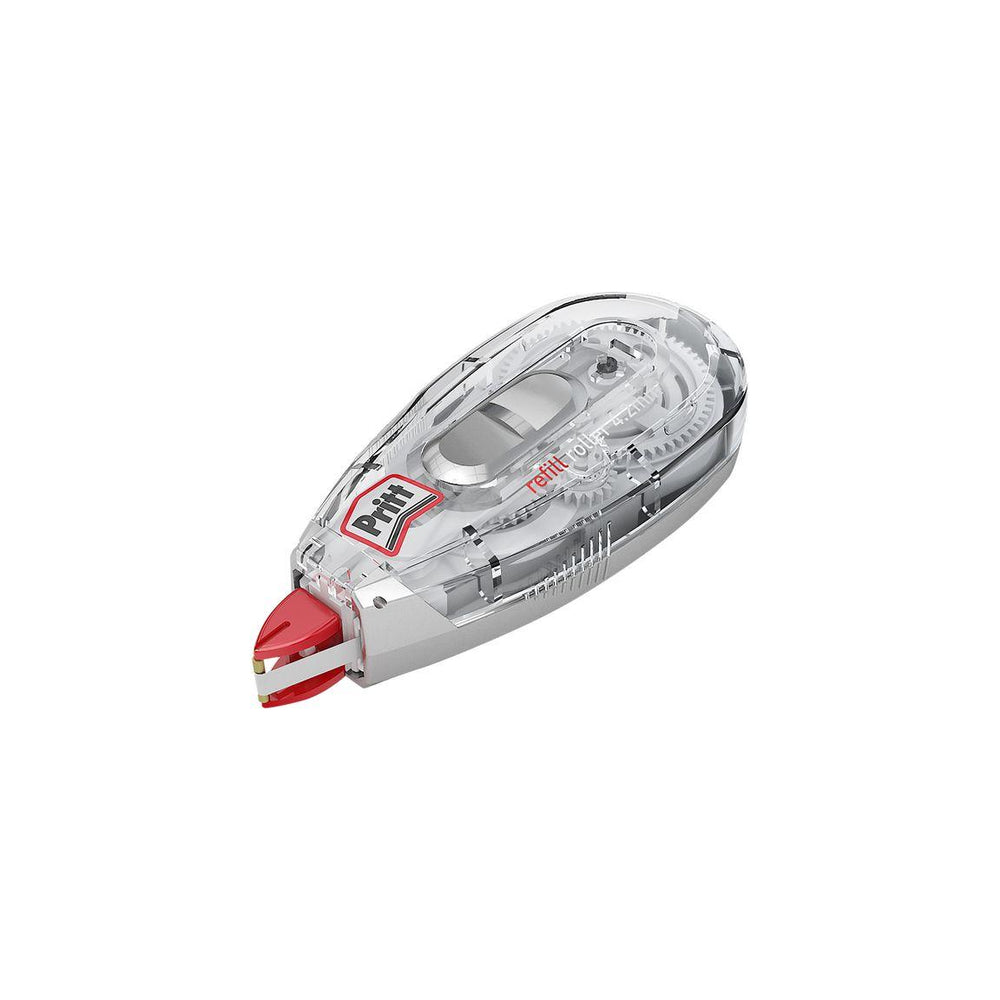 Quickly correct typos with the refillable Flex Correction Roller, which features a handy retractable tip. The Pritt Refillable Flex Correction Roller allows you to cover all types of typos, eliminating unsightly editing marks from your documents. It has a flexible tip that provides smooth and precise application. In addition, its convenient sliding mechanism allows you to retract the tip with a single movement, so you avoid damage. You can see how much tape is left thanks to the transparent cover. The tape dries instantly so the user can start writing right away. This product has dual functions: simply pull to correct an entire line, or turn it over and press to correct a single letter. The cartridge is also easy to refill, making it economical for frequent users. The refillable Flex correction roller is encased in 50% recycled plastic, which is fully recyclable. - Flexible tip for smooth and consistent correction - Refillable cassette - Apply dry for instant rewriting - Fully retractable tip for safe and convenient storage - Dual-action use: Pull when you need to correct a whole sentence, or push if it's just one letter - Easy to see how much tape is left thanks to transparent casing - Plastic casing is made from 50% recycled paper - 100% recyclable - Dimensions: 4.2mm x 12m - Packaging: Box