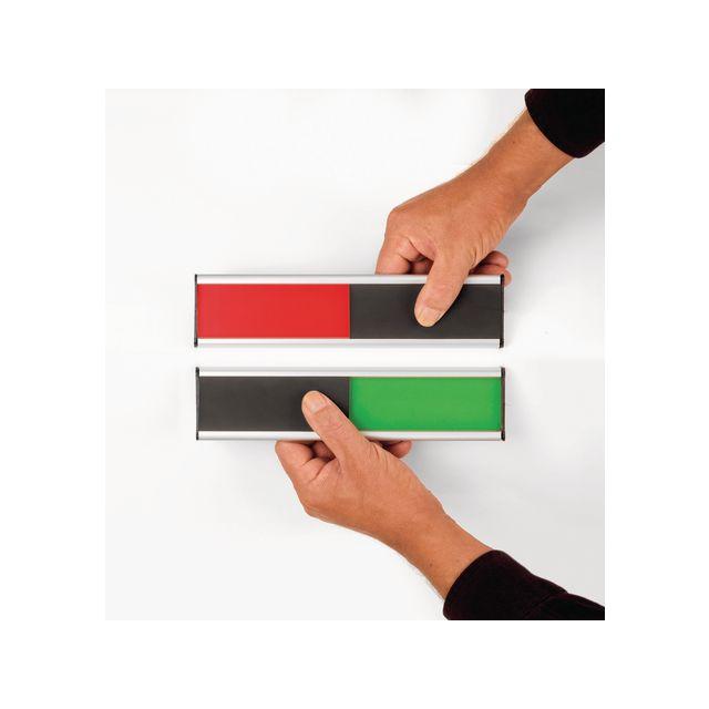 - Easy-to-read system: Move the black polystyrene panel sideways to show either the red or green side of the sign.