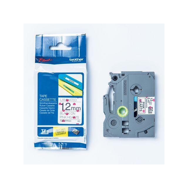 Show your labels some love with this TZe-MPPH31 original laminated tape. Its pink heart pattern is perfect for: