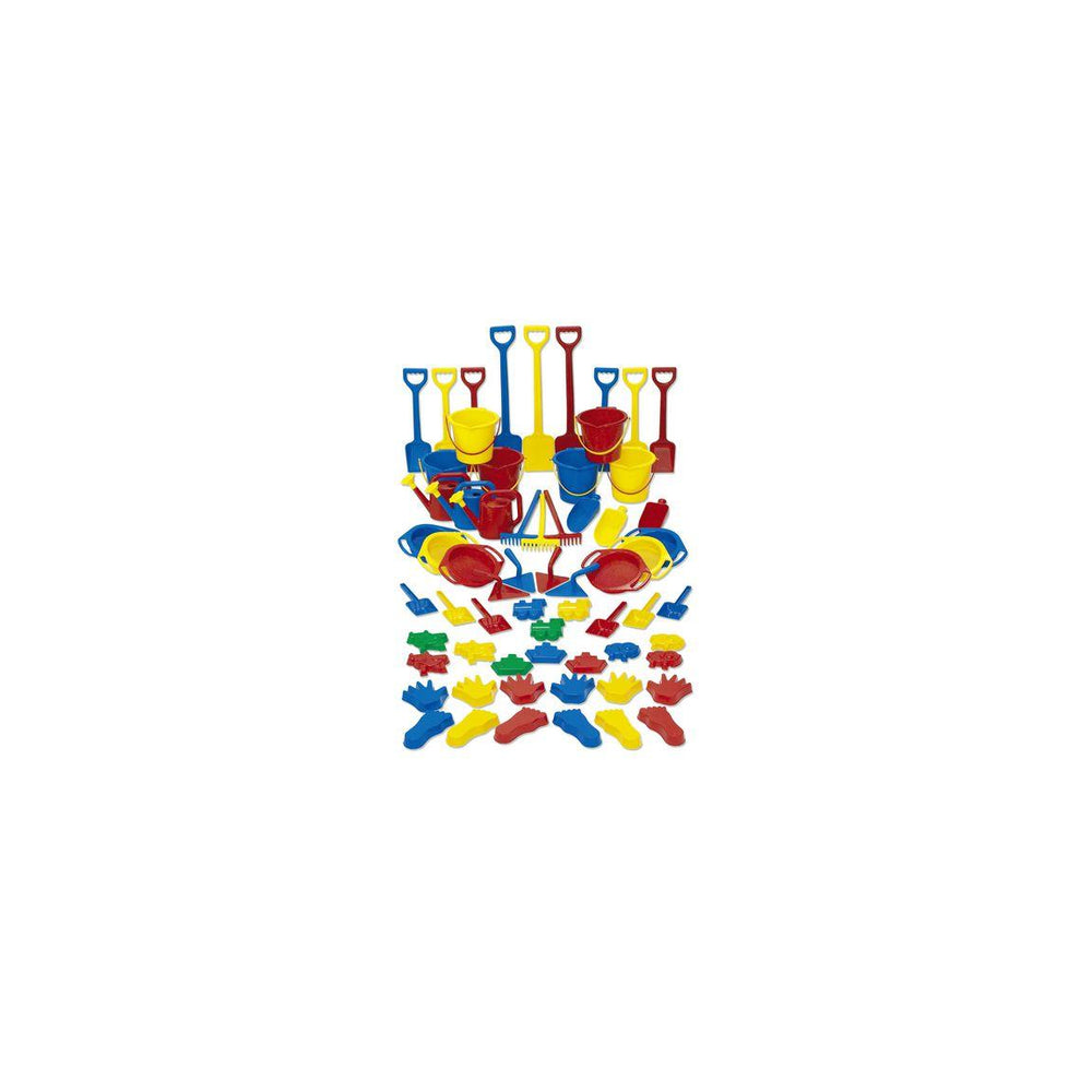 Large 64-piece sand set Take the kids to the beach or playground with this great sand set from Danish Dantoy. The set is made of strong polythene plastic. This kit contains a total of 64 different sand toys that your children can get creative with in the sandbox or on the beach. - Material: Polyethylene plastic - Number: 64 pieces - Colours: Mixed - Recommended age: 2+ - Nordic Ecolabel: Licence number 595-001