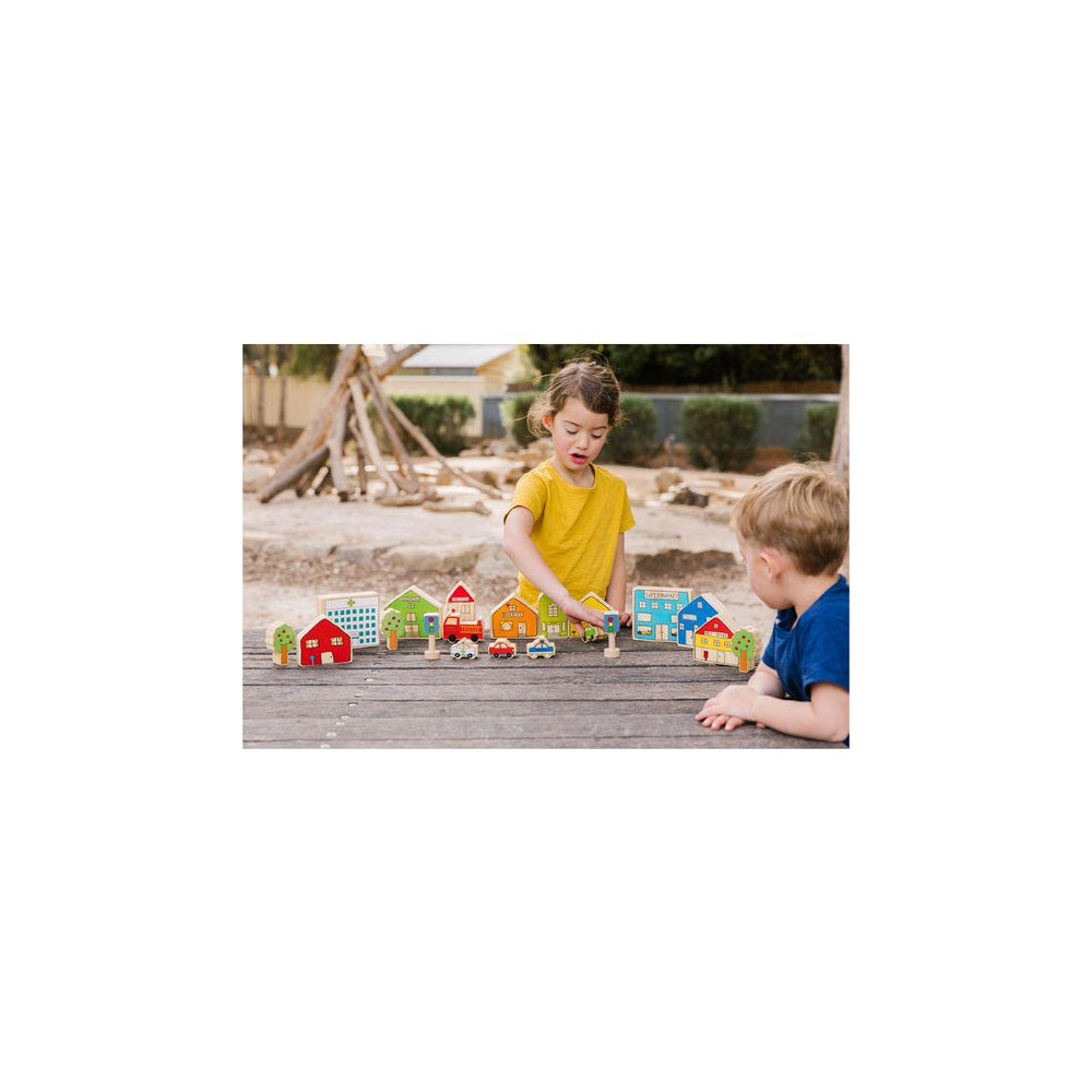 With these pieces, you can create your own little town. The large but lightweight wooden blocks have been designed for little hands to easily grip.